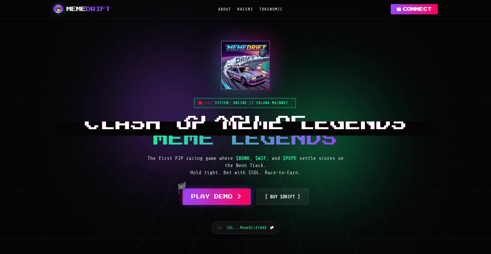 The first P2P racing game where $BONK, $WIF, and $PEPE settle scores on the Neon Track.Hold tight.