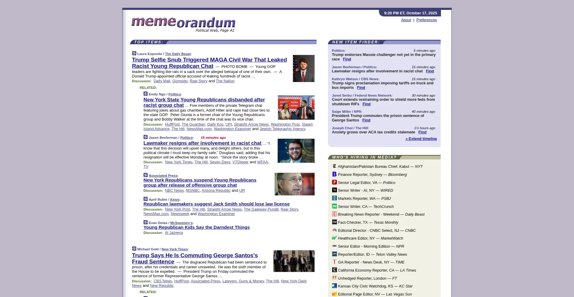 A continuously updated summary of the news stories that US political commentators are discussing online right now.