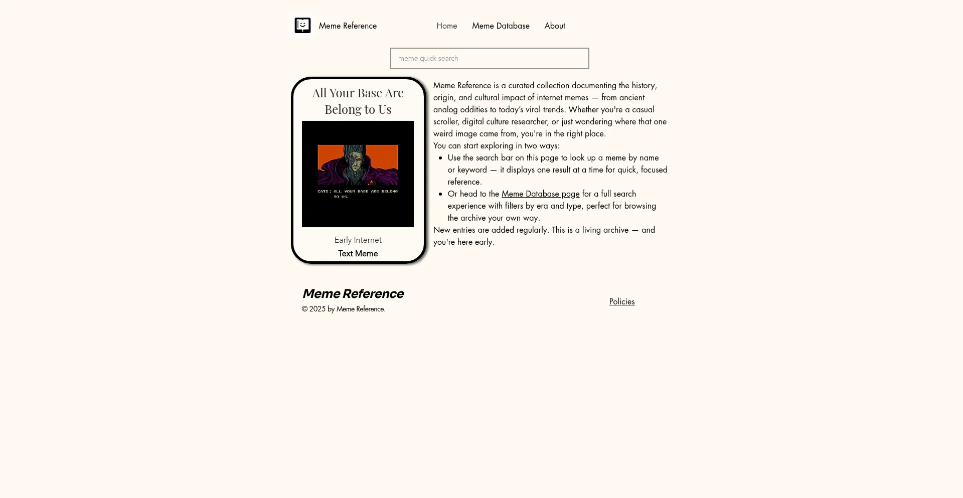 Explore the history, origin, and evolution of internet memes. Meme Reference is a curated archive documenting meme culture with verified sources, timelines, and context.
