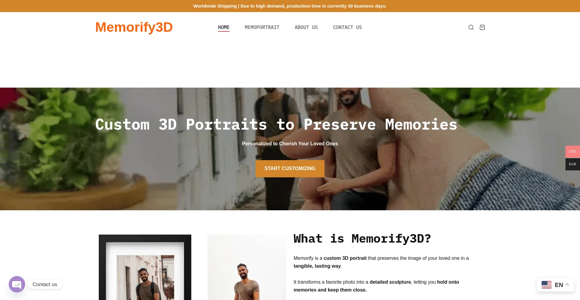 Memorify3D – We turn your most meaningful photo into a 3D full-color sculpture you can hold forever.