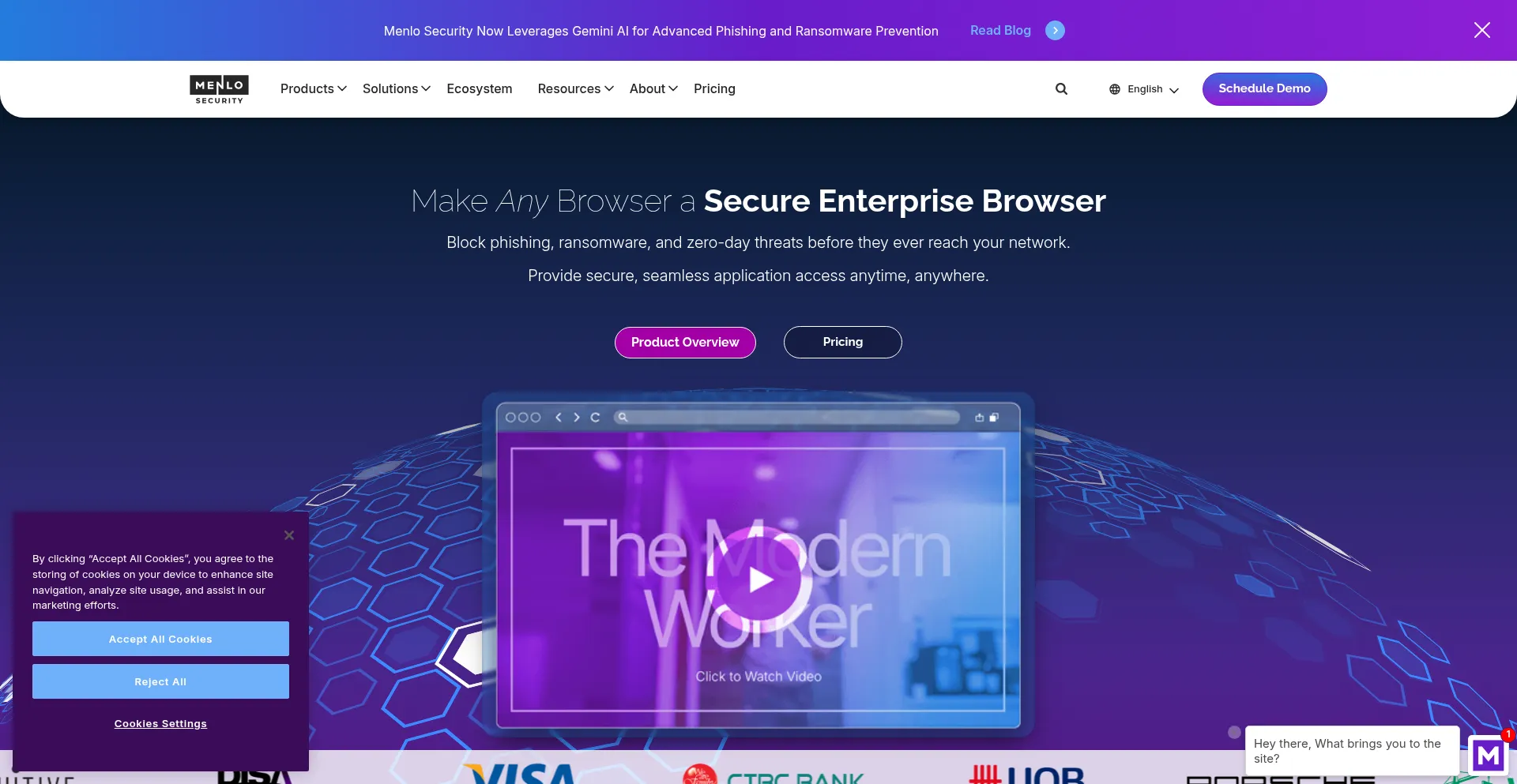 该网站实现符合GDPR或CCPA等隐私法规的cookie同意机制。这表明 menlosecurity.com 遵守数据保护标准并为用户提供对个人数据收集实践的控制。