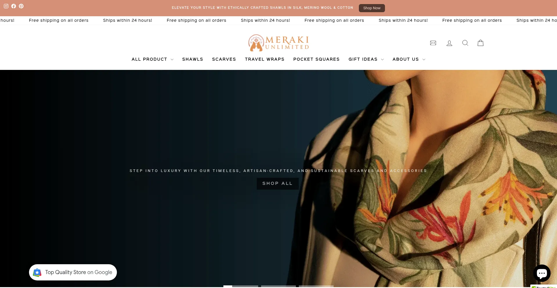 Meraki offers luxury shawls, scarves, and pocket squares crafted from silk, and fine cotton. Luxury silk scarves for gifting.Wrap yourself in soft, breathable cotton wherever yo...