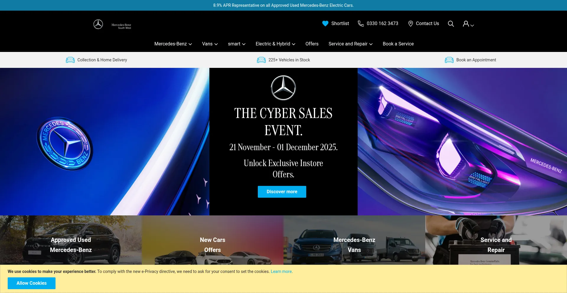 该网站实现符合GDPR或CCPA等隐私法规的cookie同意机制。这表明 mercedes-benzsouthwest.co.uk 遵守数据保护标准并为用户提供对个人数据收集实践的控制。
