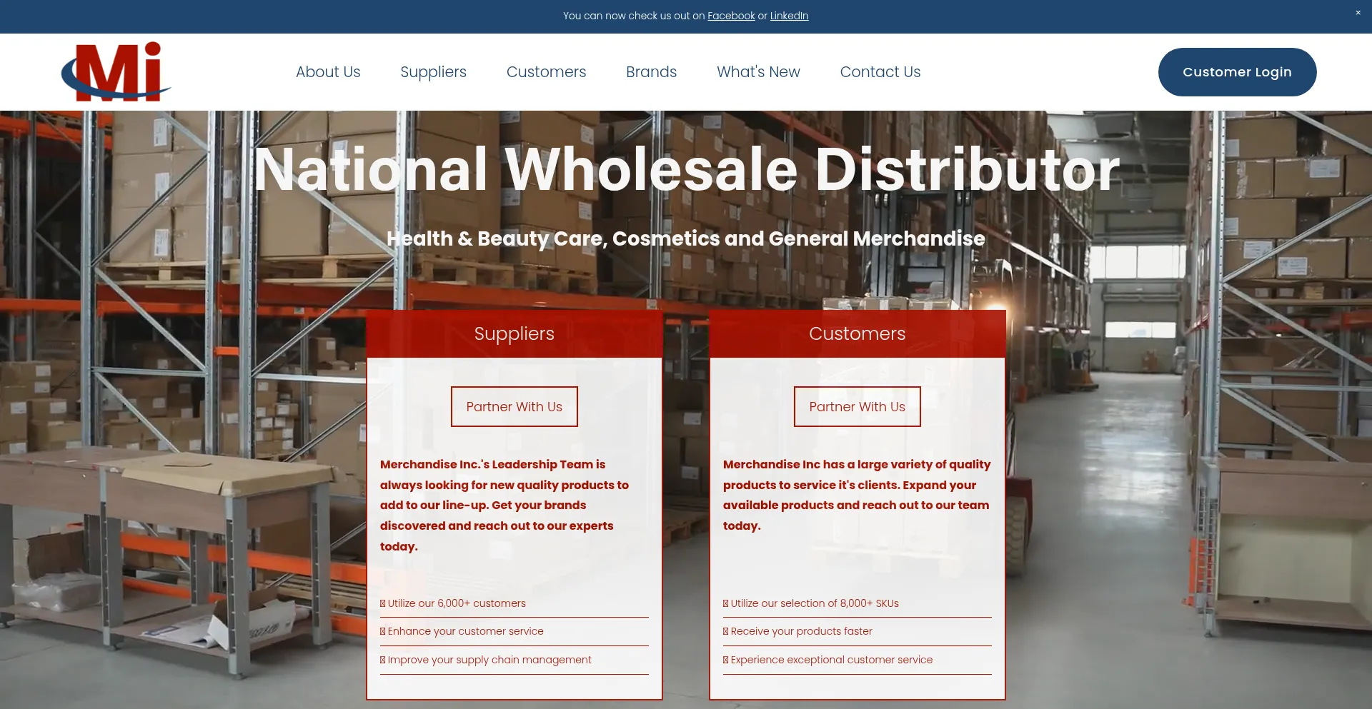 网站上存在社交媒体链接表明 merchandiseinc.com 在社交媒体上维护官方账户,这是可信度和参与度的积极信号。
