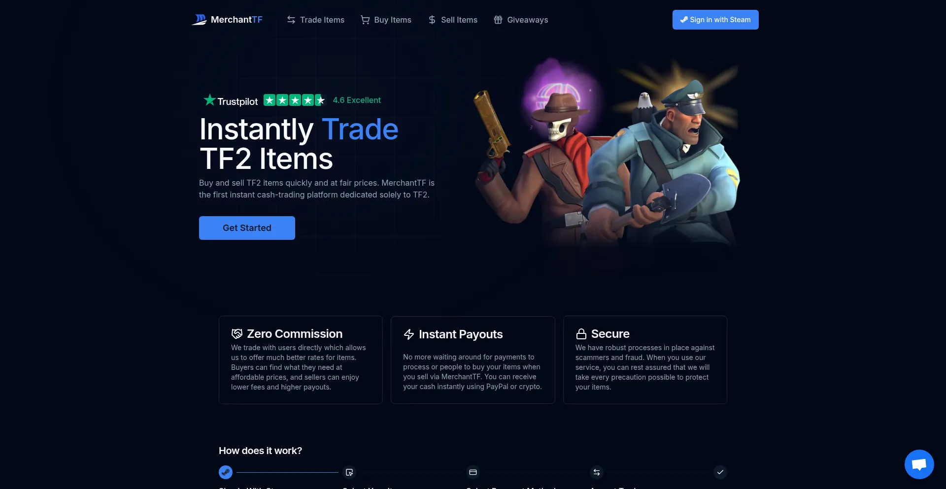 Buy and sell TF2 items quickly and at fair prices. MerchantTF is the first instant cash-trading platform dedicated solely to TF2.