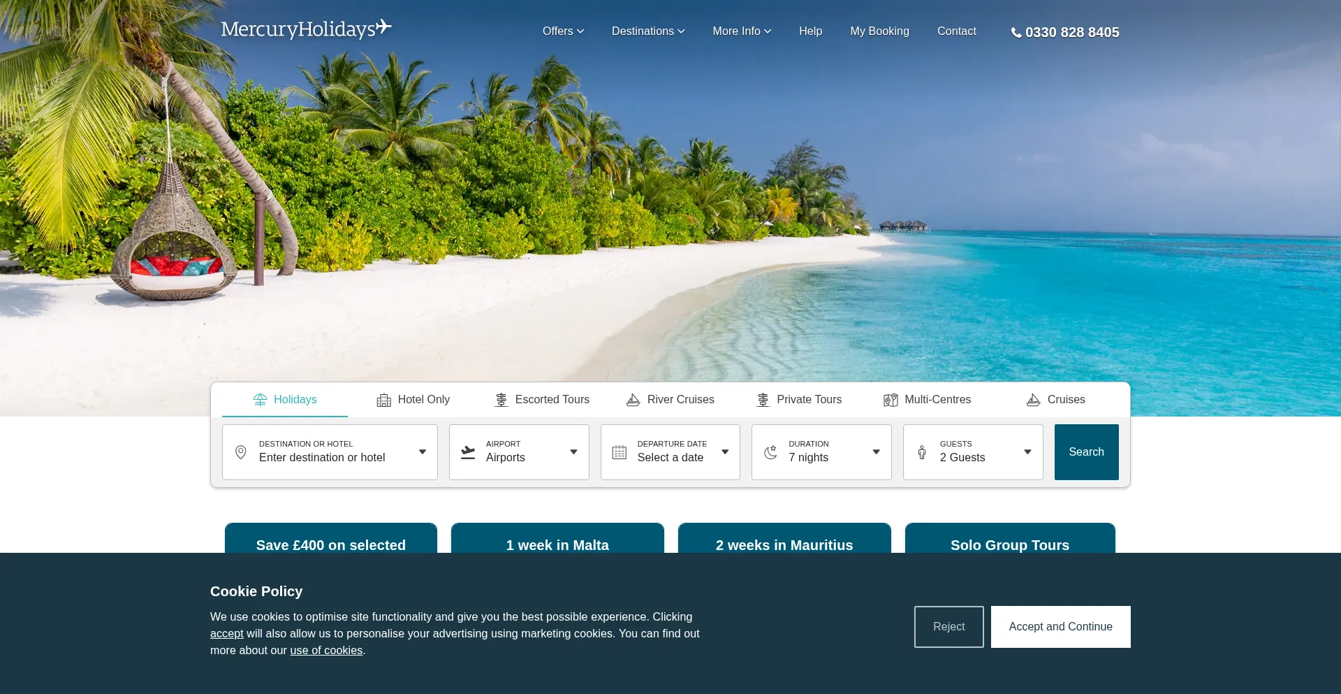 Book your all inclusive, package or singles holiday with Mercury Holidays for cheap holidays, tours, hotels & flights to hundreds of holiday destinations.