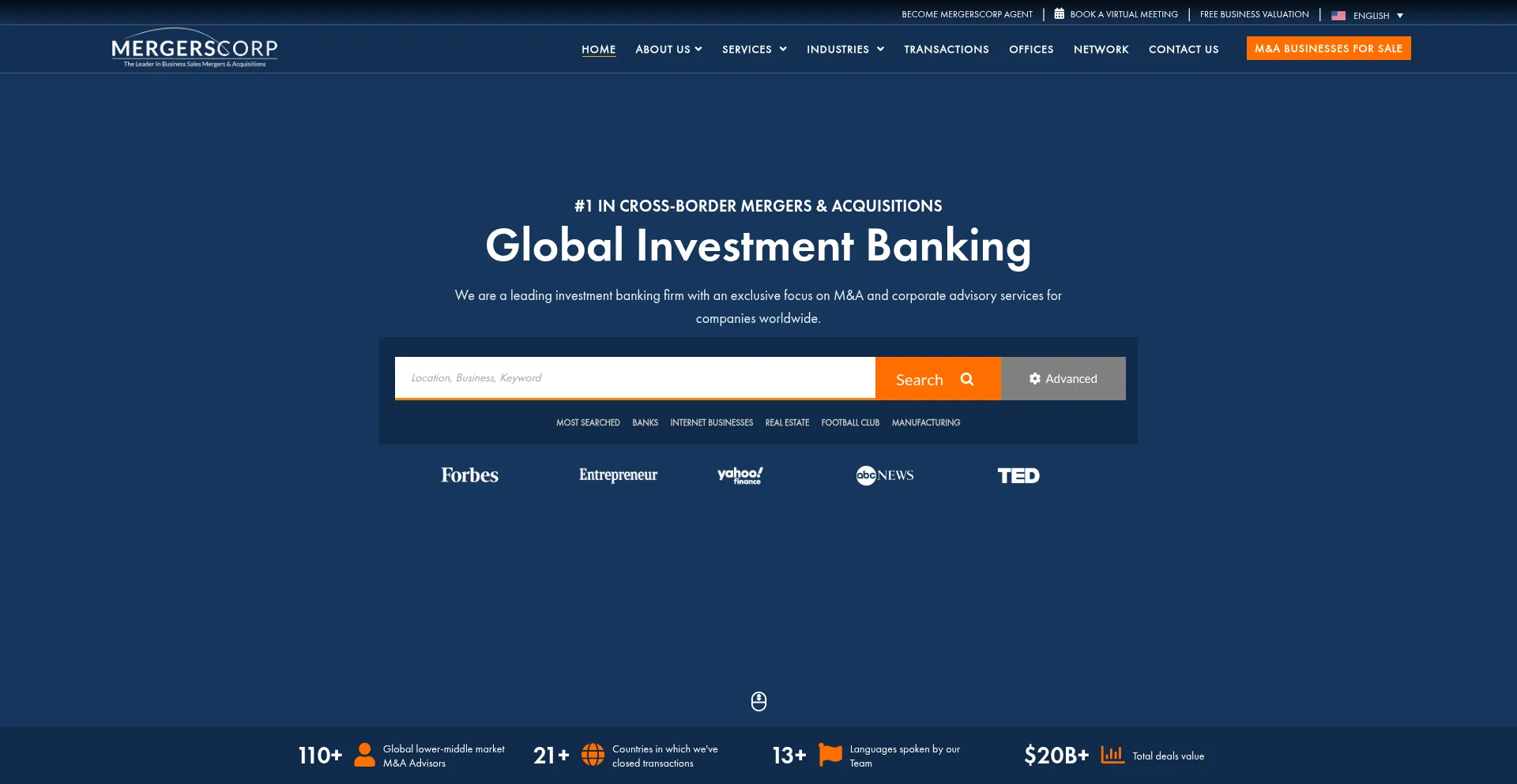 Award Winning Global Investment Banking Firm with a focus on Corporate Finance & Cross Border Mergers and Acquisitions (M&A).