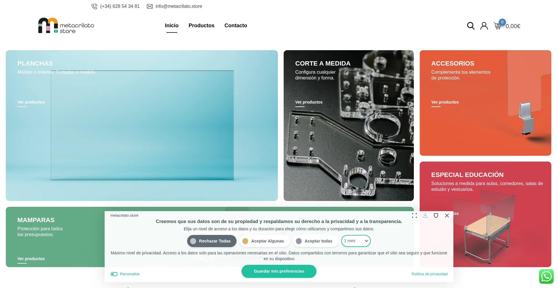 Tienda online de metacrilato. Corte a medida de cualquier dimensión y forma. Envío gratuito.