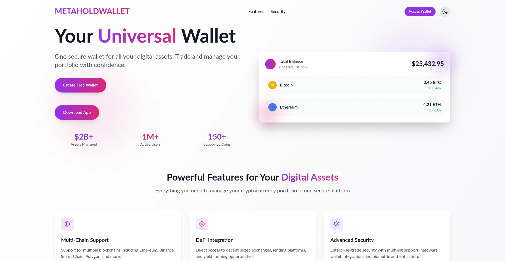 该网站实现数据收集表单,请求个人信息,包括姓名、电子邮件地址、电话号码或其他敏感详细信息。用户应验证 metaholdwallet.com 的合法性并在提交个人数据前查看隐私政策。
