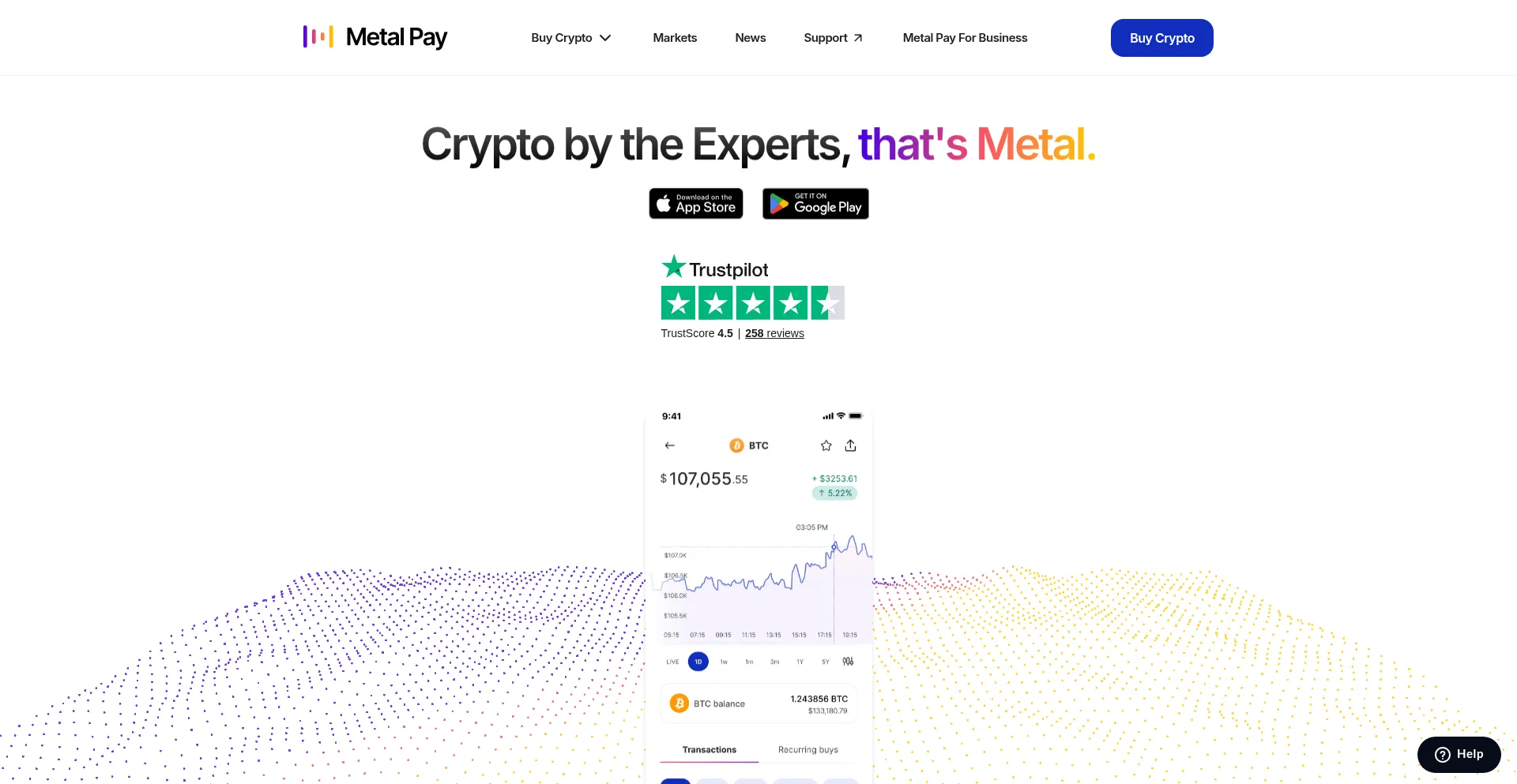 Buy BTC, ETH, XRP, LTC & DOGE | Low Fees, 24/7 Support | Metal Pay