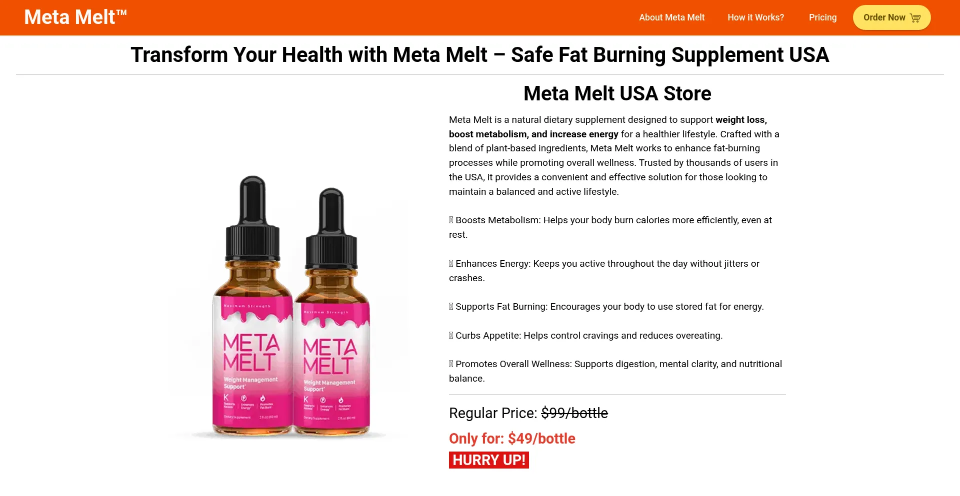 Discover Meta Melt’s natural ingredients like Maca, Green Tea, and Forskolin, supporting weight loss, metabolism, and energy. Safe, USA-made supplement.