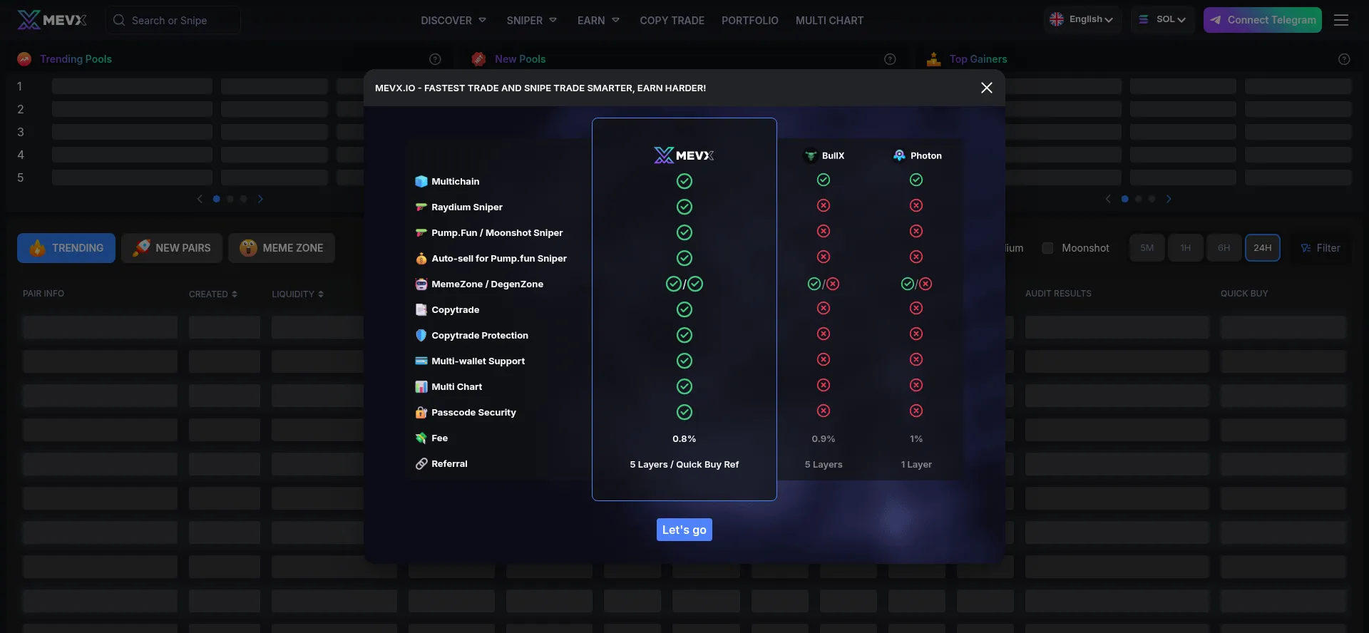 Trade with multiple wallets and enjoy features like token trading, Pump.fun trades and sniping, and copy trades. Plus, get a chance to receive massive airdrops.