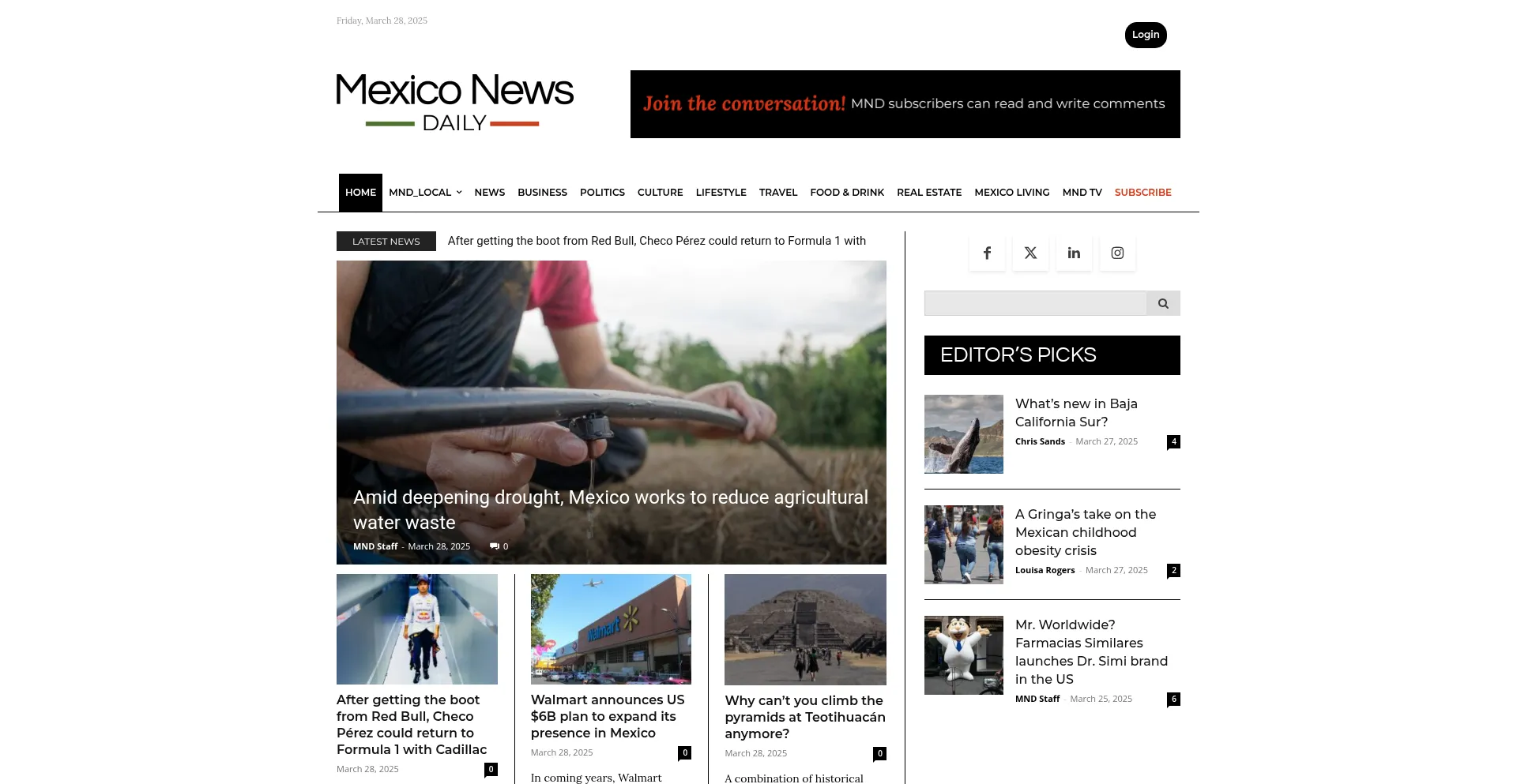 网站上存在社交媒体链接表明 mexiconewsdaily.com 在社交媒体上维护官方账户,这是可信度和参与度的积极信号。