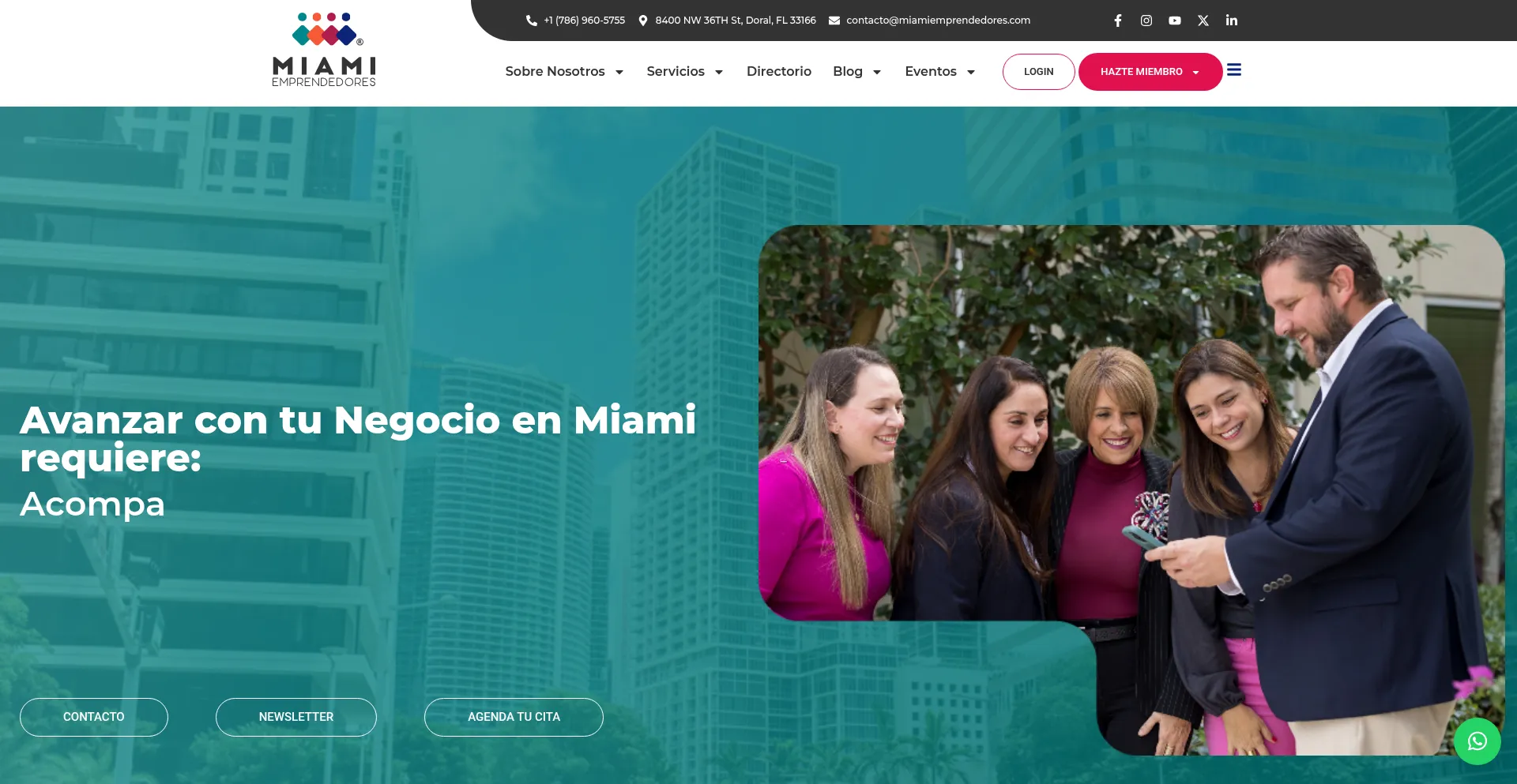 网站上存在社交媒体链接表明 miamiemprendedores.com 在社交媒体上维护官方账户,这是可信度和参与度的积极信号。