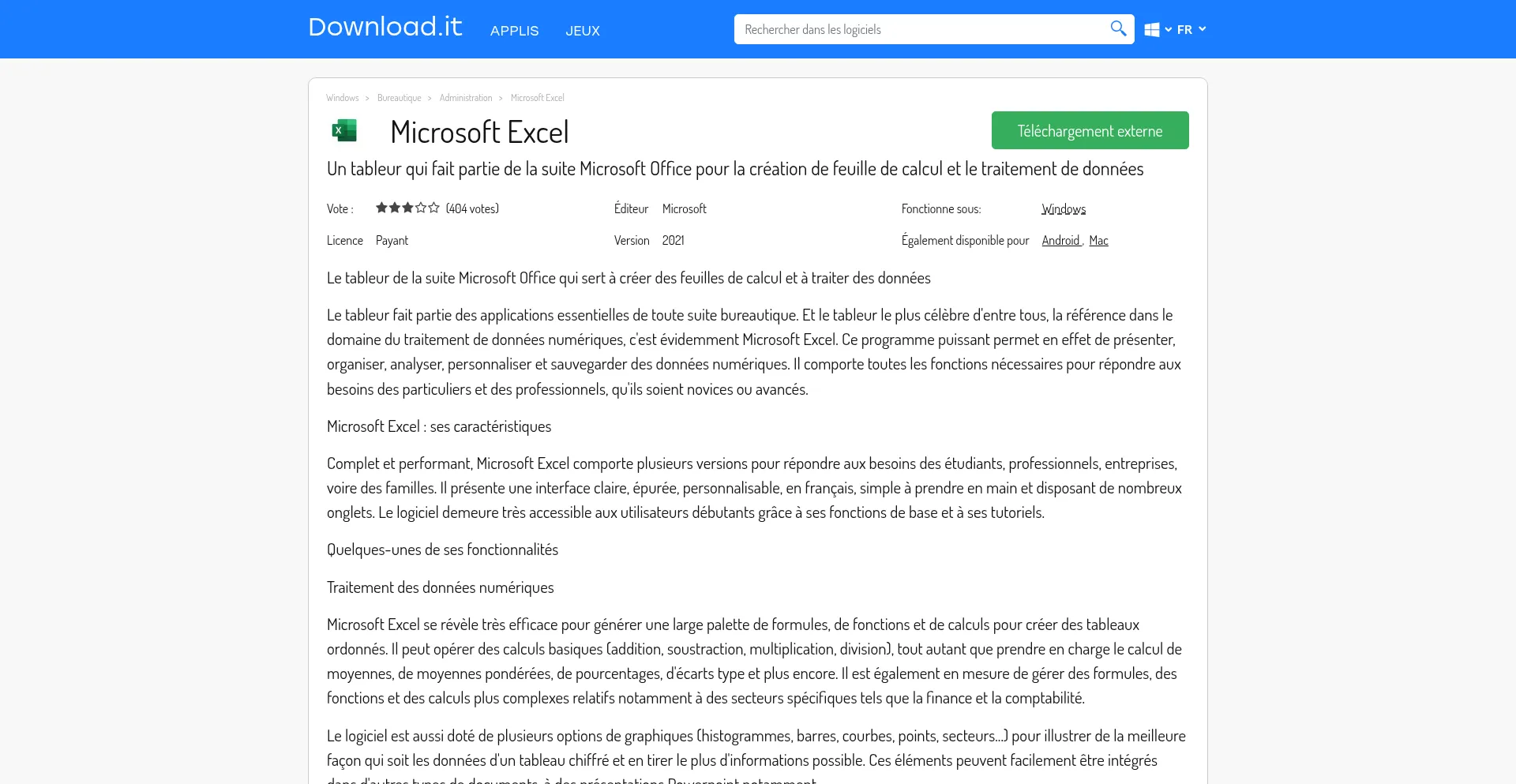 Téléchargez Microsoft Excel 2021. Un tableur qui fait partie de la suite Microsoft Office pour la création de feuille de calcul et le traitement de données.