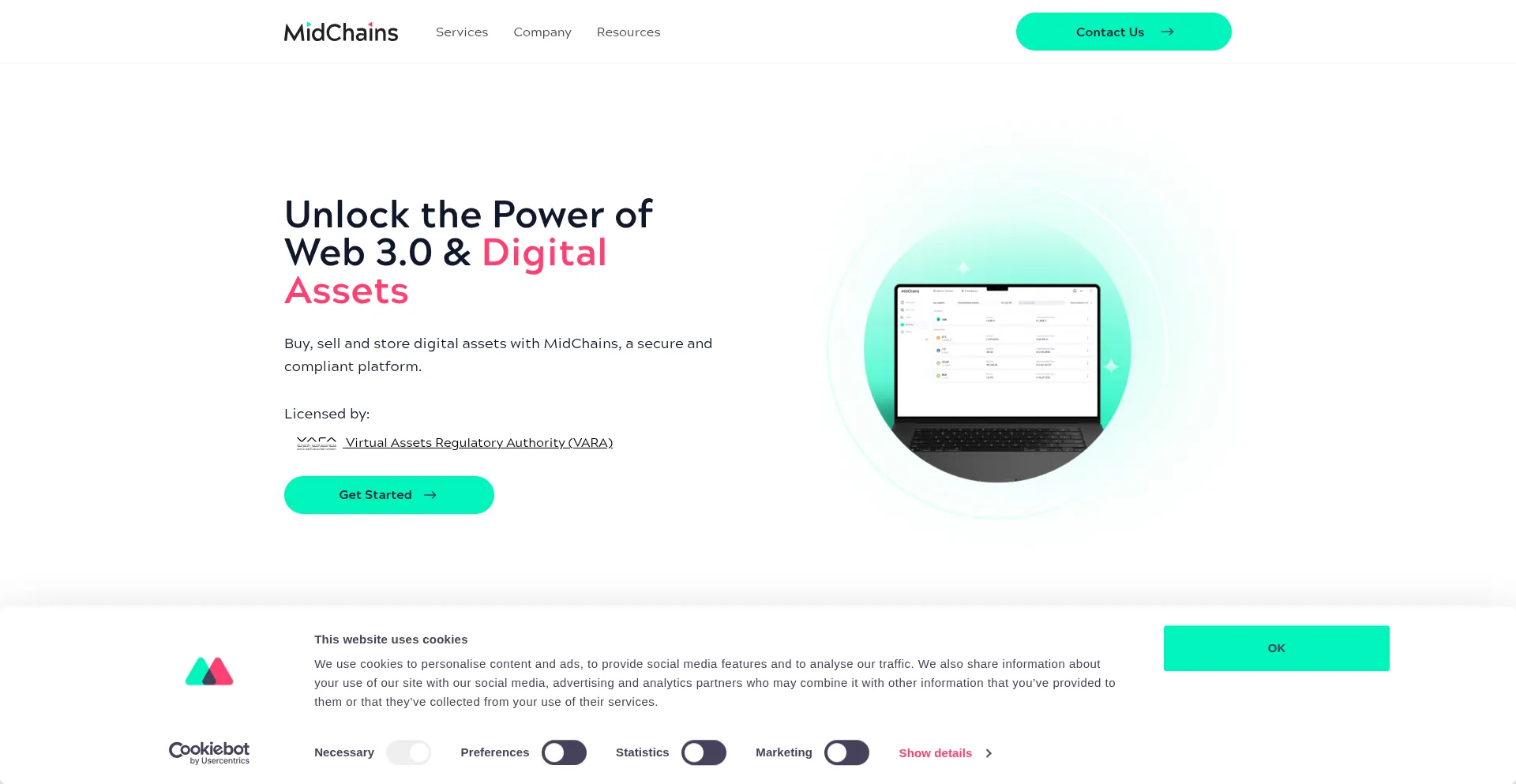 Buy, sell and store digital assets with MidChains, a secure and compliant platform.