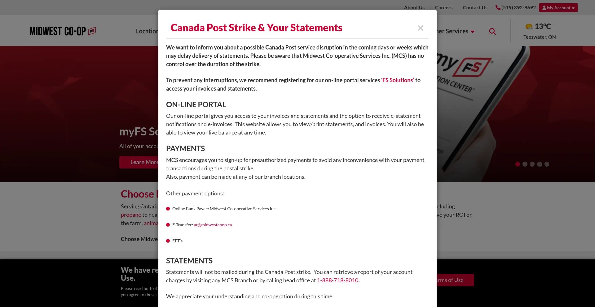 该网站实现数据收集表单,请求个人信息,包括姓名、电子邮件地址、电话号码或其他敏感详细信息。用户应验证 midwestcoop.ca 的合法性并在提交个人数据前查看隐私政策。