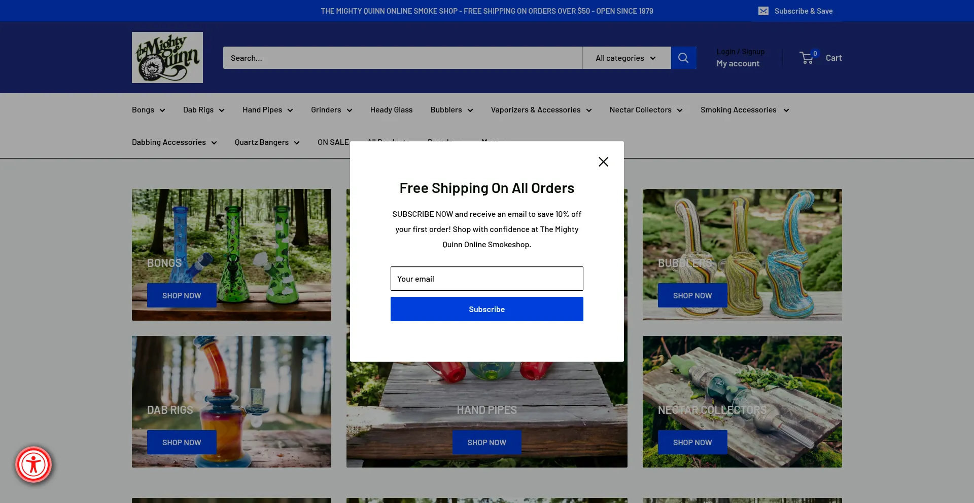 网站上存在社交媒体链接表明 mightyquinnsmokeshop.com 在社交媒体上维护官方账户,这是可信度和参与度的积极信号。