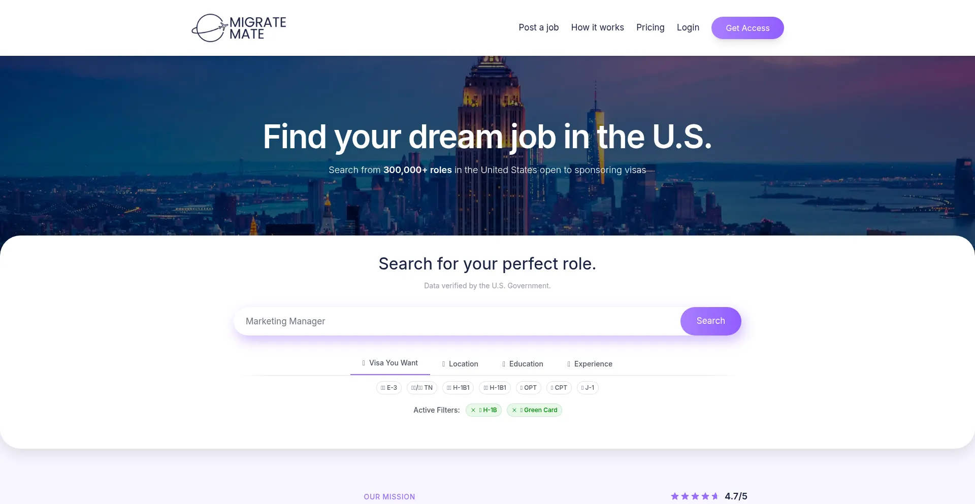 Access 500,000+ verified U.S. jobs with visa sponsorship.