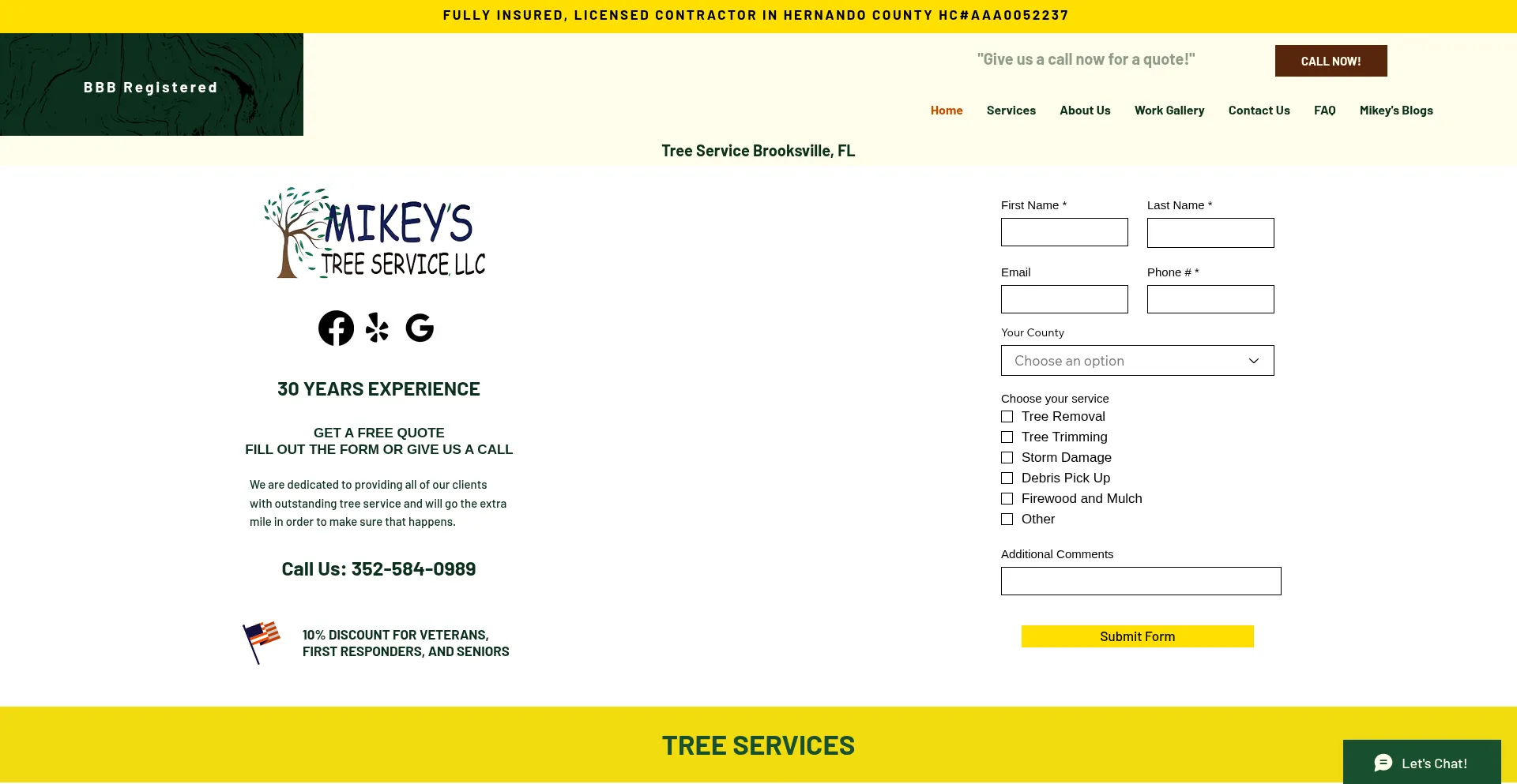 Mikey's Tree Service in Brooksville, FL – 30+ years of expert tree removal, trimming, stump grinding, storm damage & emergency services.