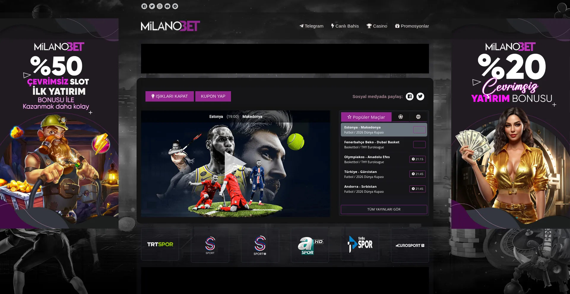 MilanoBet TV | Maçı Canlı izle, HD Kalitede Maç Keyfi