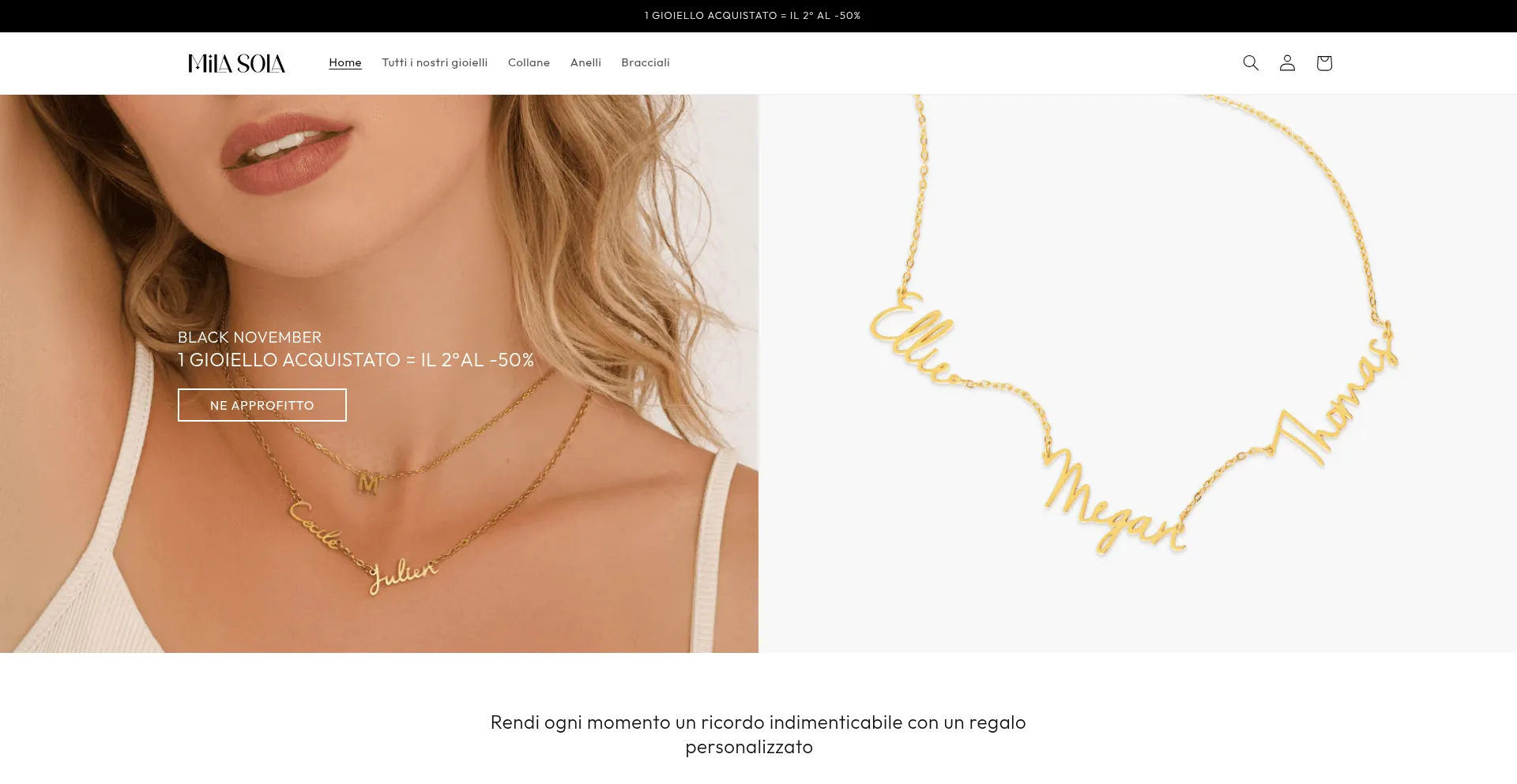Scopri i gioielli personalizzati Mila Sola: bracciali, collane e anelli pensati per esaltare i tuoi momenti più preziosi. Fai un regalo unico e indimenticabile.