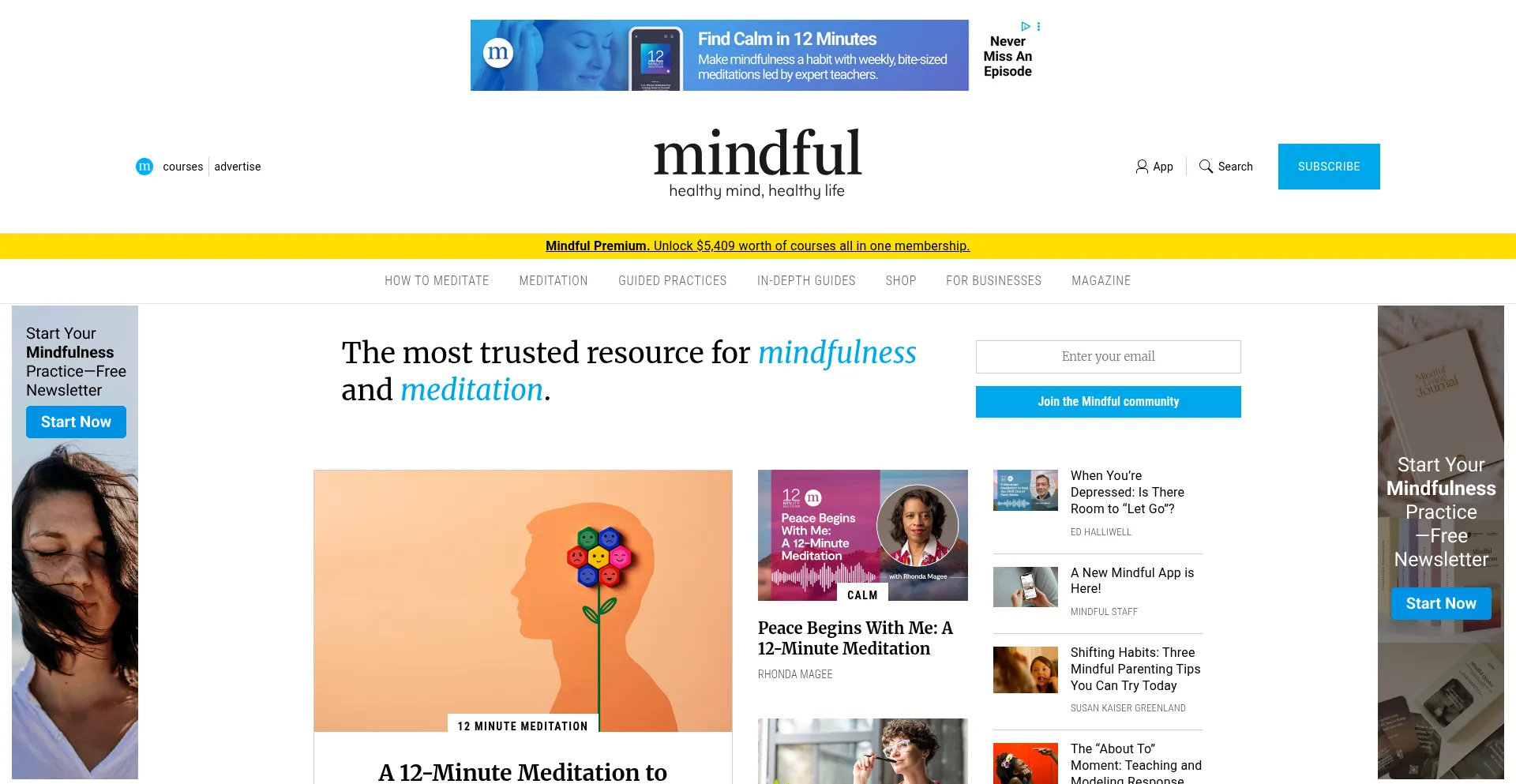 mindful.org 提供 Android 设备移动应用程序,表明平台存在已扩展到网络服务之外。