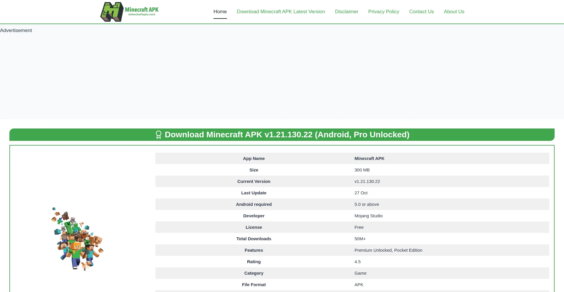 mineckraftapks.com 提供 Android 设备移动应用程序,表明平台存在已扩展到网络服务之外。