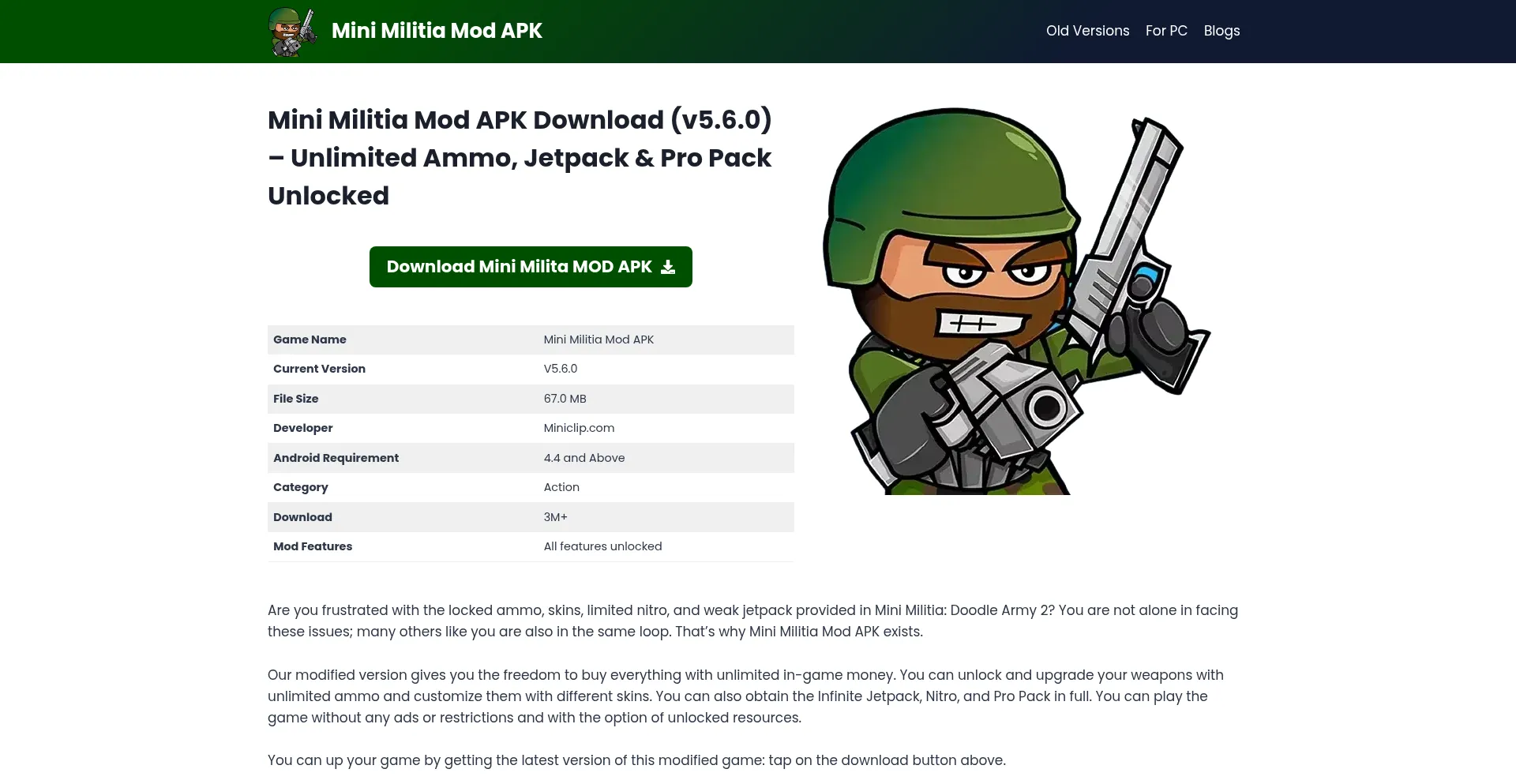 Download Mini Militia Mod APK (v5.6.0) with unlimited ammo, jetpack boost, and pro pack unlocked. Enjoy classic 2D combat offline and over LAN.