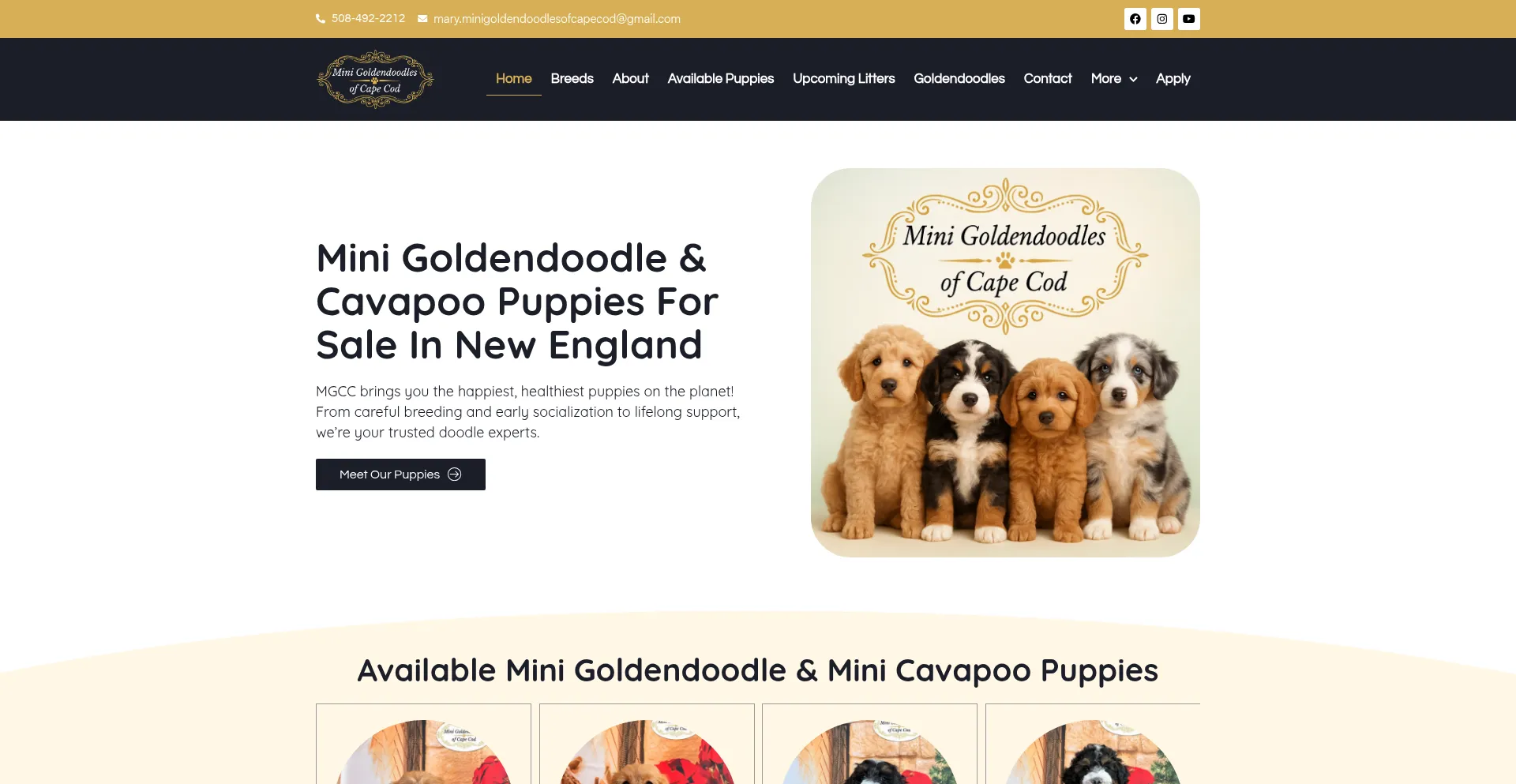 网站上存在社交媒体链接表明 minigoldendoodlesofcapecodllc.com 在社交媒体上维护官方账户,这是可信度和参与度的积极信号。