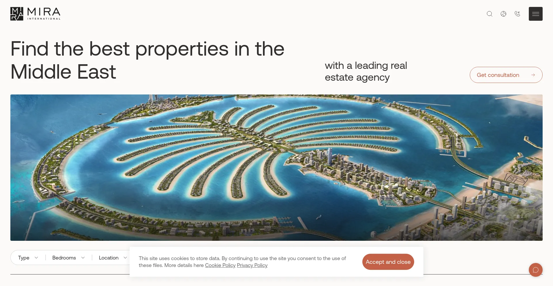 该网站实现符合GDPR或CCPA等隐私法规的cookie同意机制。这表明 miraestate.ae 遵守数据保护标准并为用户提供对个人数据收集实践的控制。