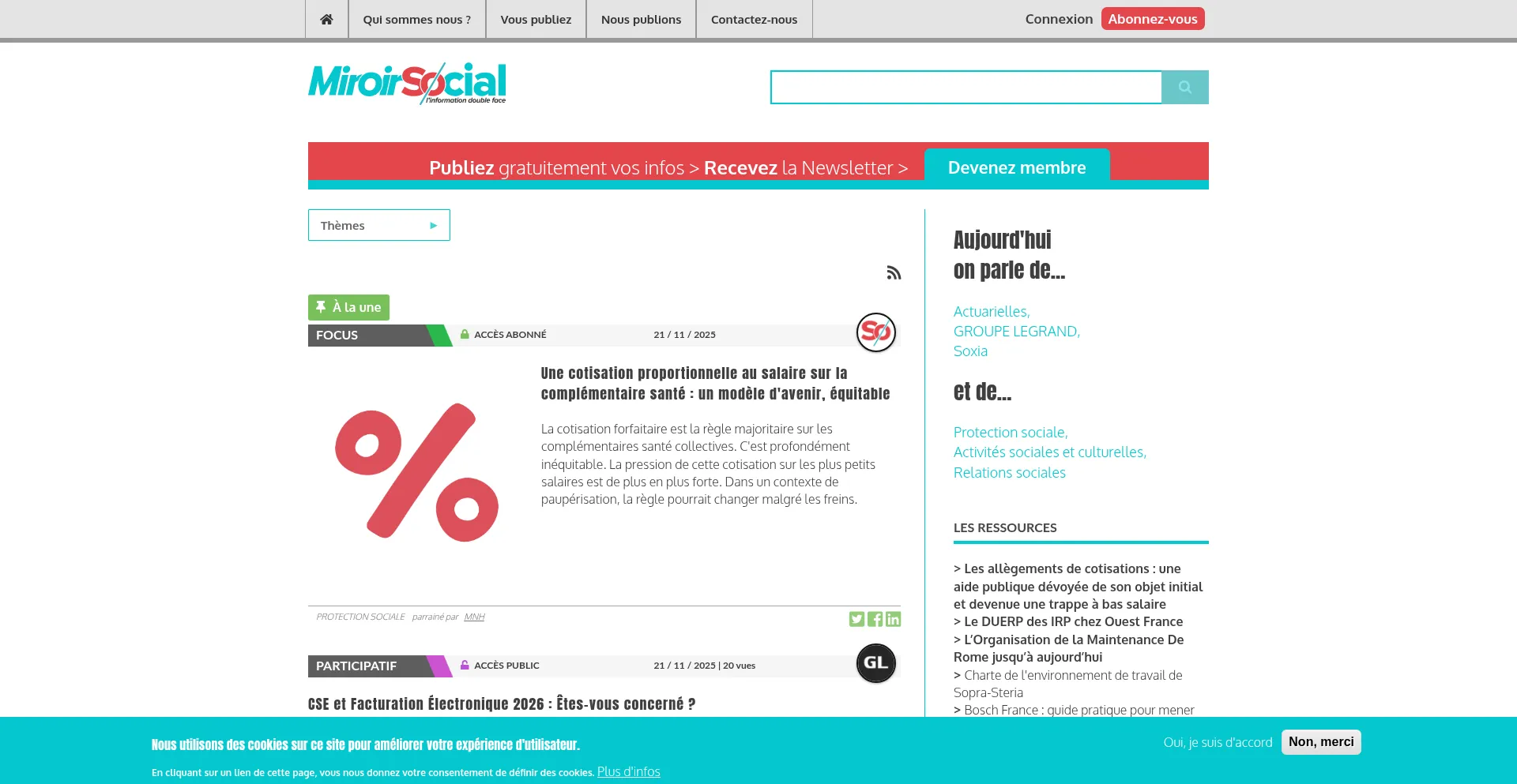 该网站实现符合GDPR或CCPA等隐私法规的cookie同意机制。这表明 miroirsocial.com 遵守数据保护标准并为用户提供对个人数据收集实践的控制。