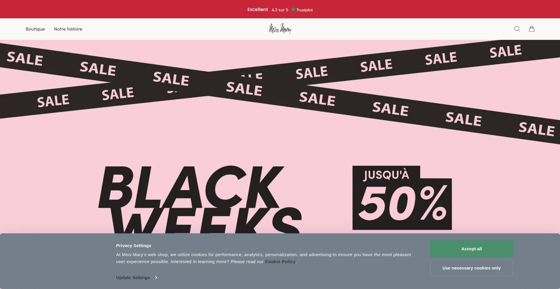 该网站实现符合GDPR或CCPA等隐私法规的cookie同意机制。这表明 missmary.fr 遵守数据保护标准并为用户提供对个人数据收集实践的控制。