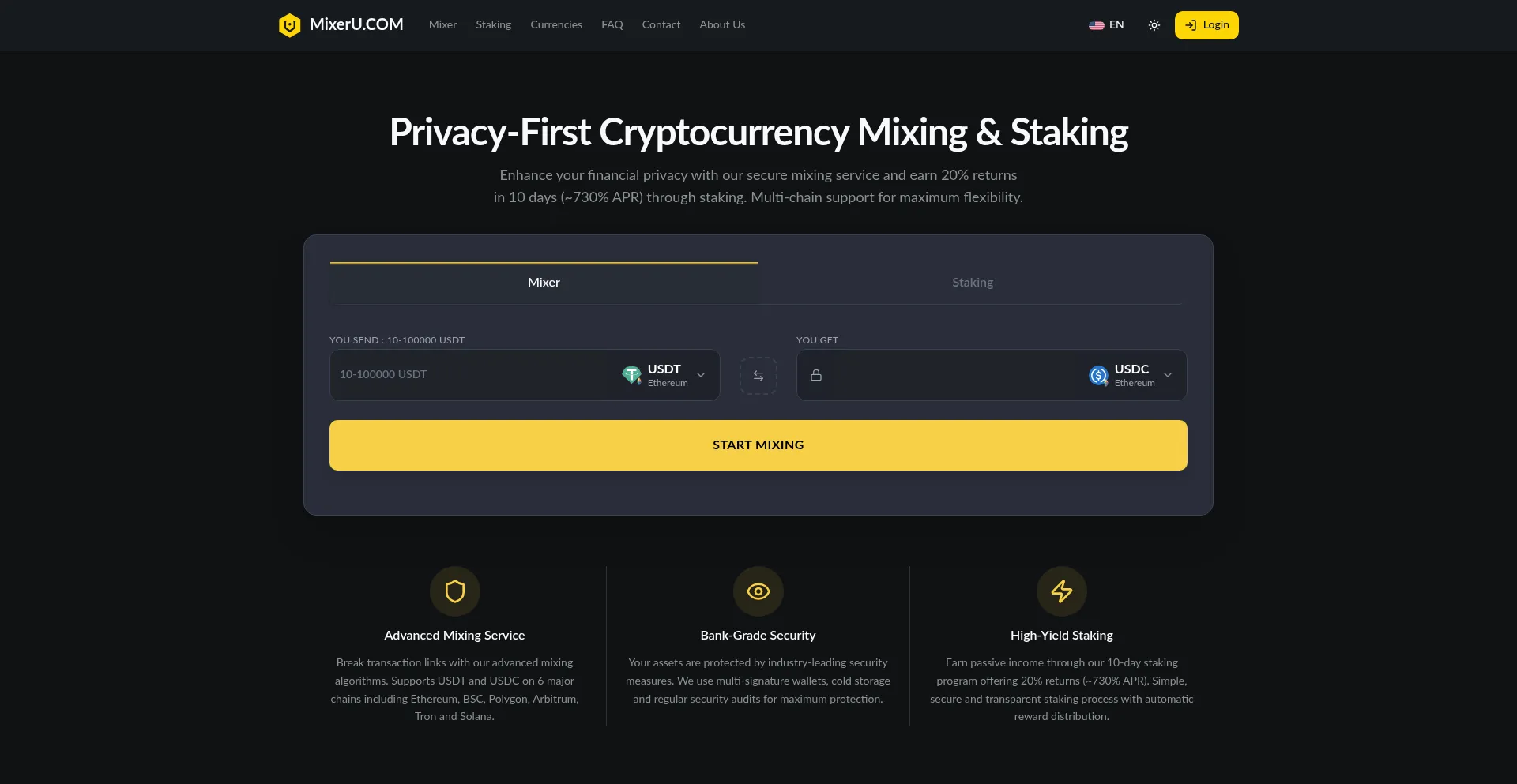 MixerU - Privacy-First Cryptocurrency Mixing & Staking