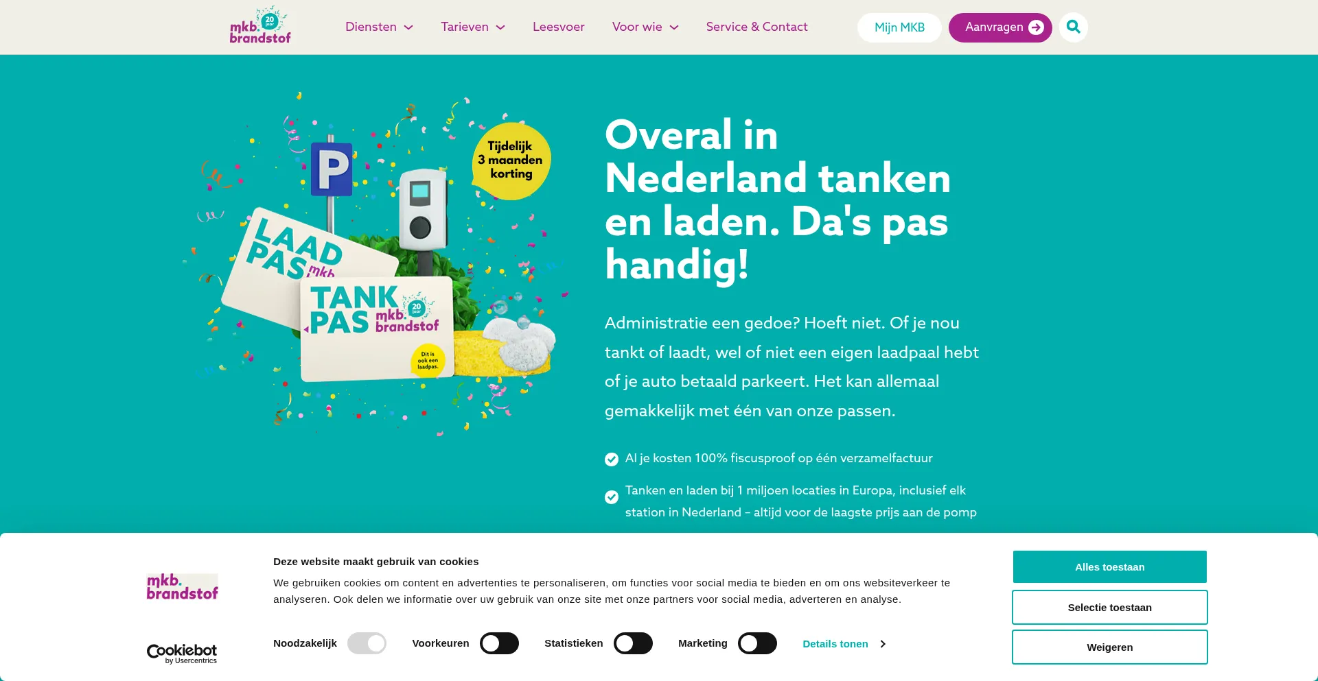 该网站实现符合GDPR或CCPA等隐私法规的cookie同意机制。这表明 mkb-brandstof.nl 遵守数据保护标准并为用户提供对个人数据收集实践的控制。