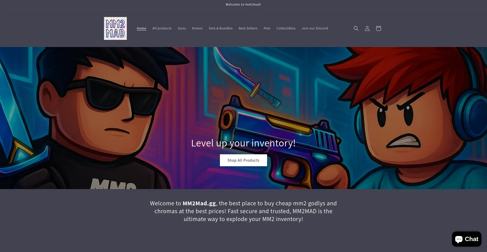 Buy cheap Murder Mystery 2 (MM2) godly knives, chroma weapons, and exclusive bundles at MM2MAD.GG. Fast private server delivery, secure checkout, best prices, and trusted by pla...