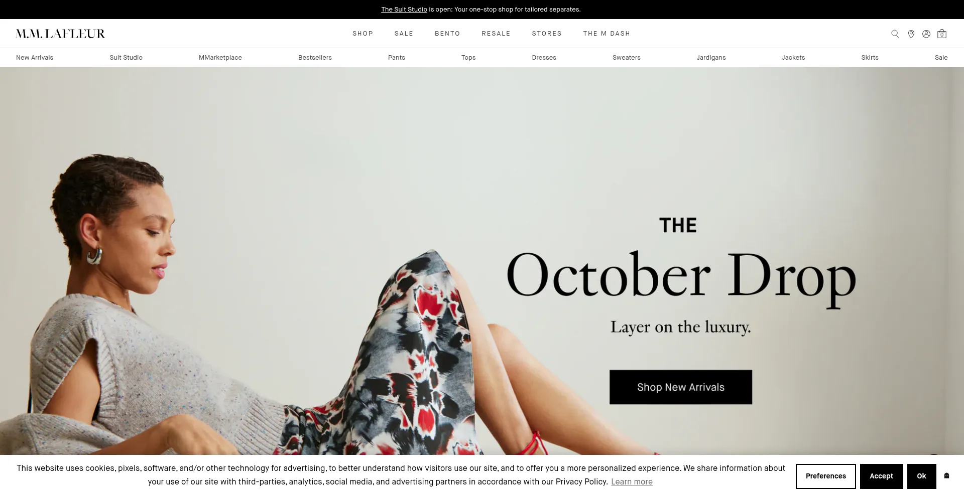 该网站实现符合GDPR或CCPA等隐私法规的cookie同意机制。这表明 mmlafleur.com 遵守数据保护标准并为用户提供对个人数据收集实践的控制。