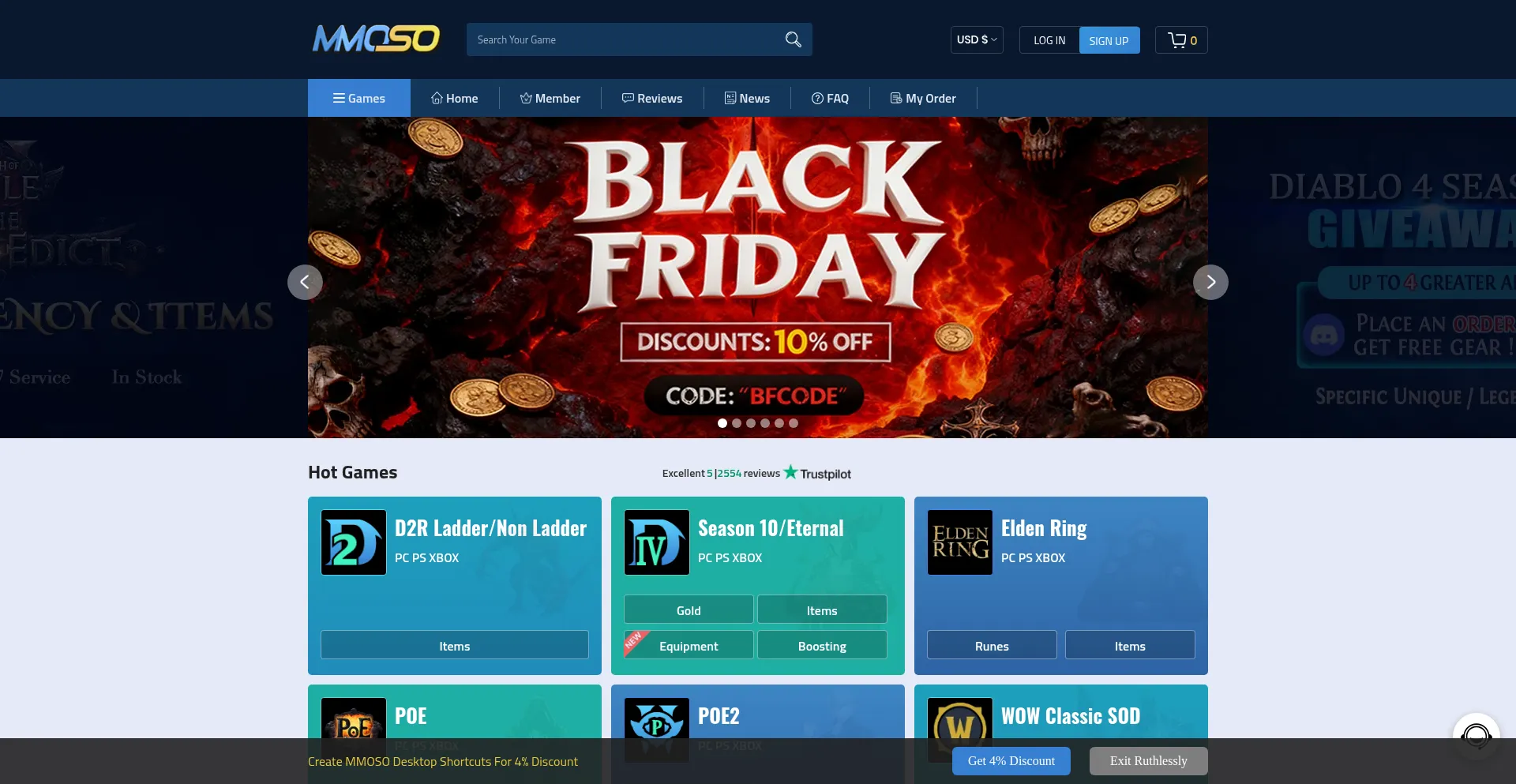 MMOSO is the best place that offers Cheap D2R Items for sale, Buy POE Currency, Diablo 4 Gold, Steam Level Up, ACNH Bells with cheap prices, fast delivery, and 100% safe.