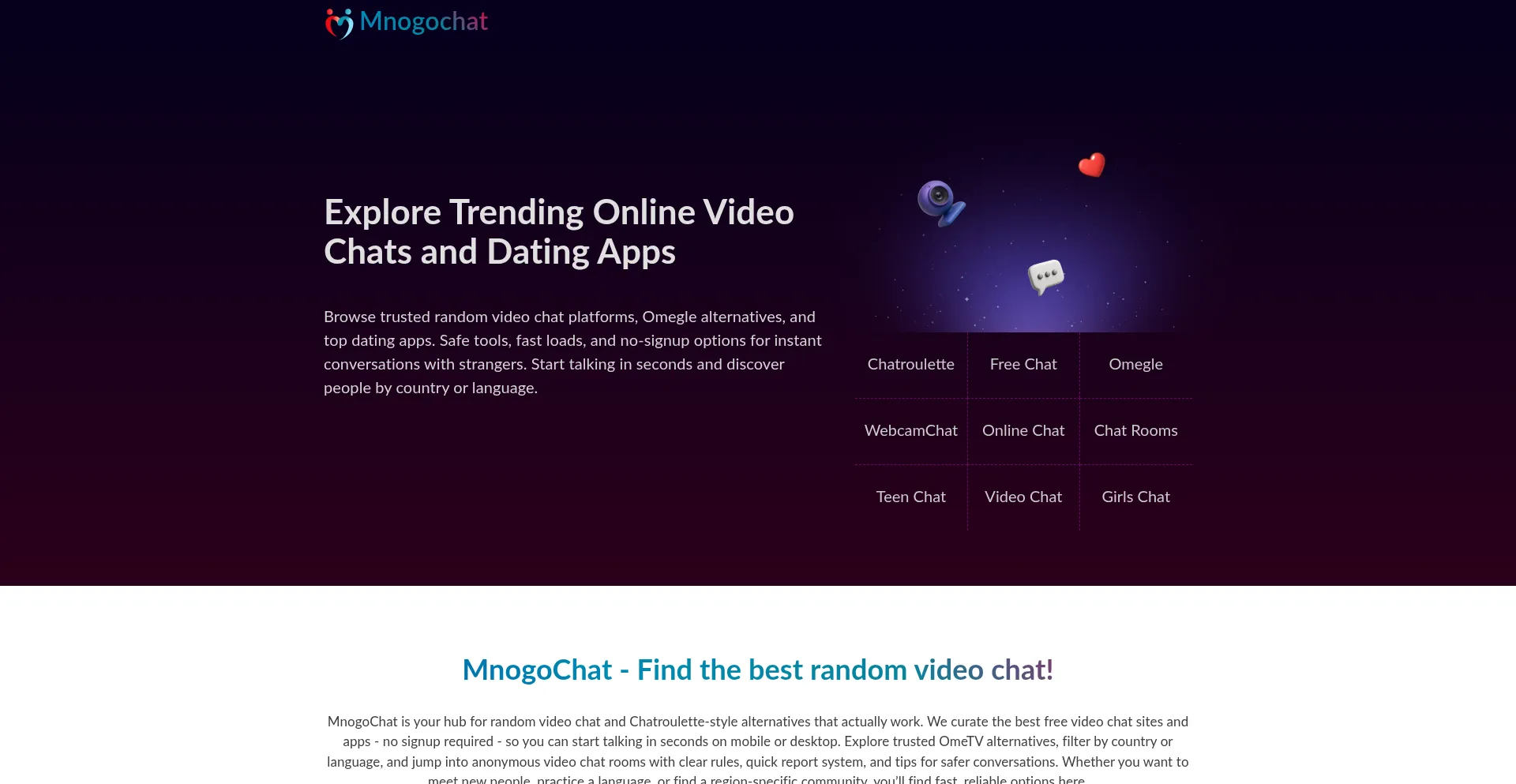 Explore 🏆 TOP popular online video chats–fast, safe, and free. Compare dating apps alternatives, and anonymous video chat for everyone ✅ ➡ Choose you video chat now!