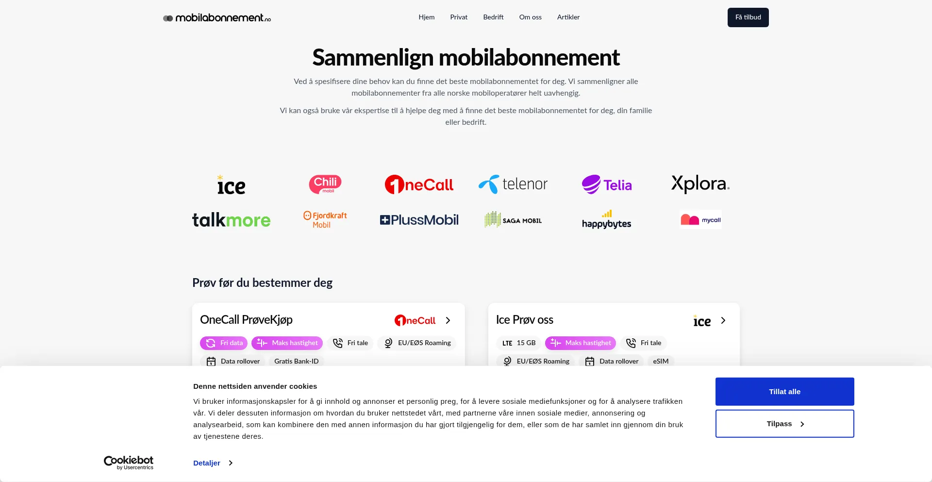 Full oversikt over alle norske mobilabonnement. Her kan du enkelt sammenligne alle mobilabonnement som er tilgjengelig på det norske markedet