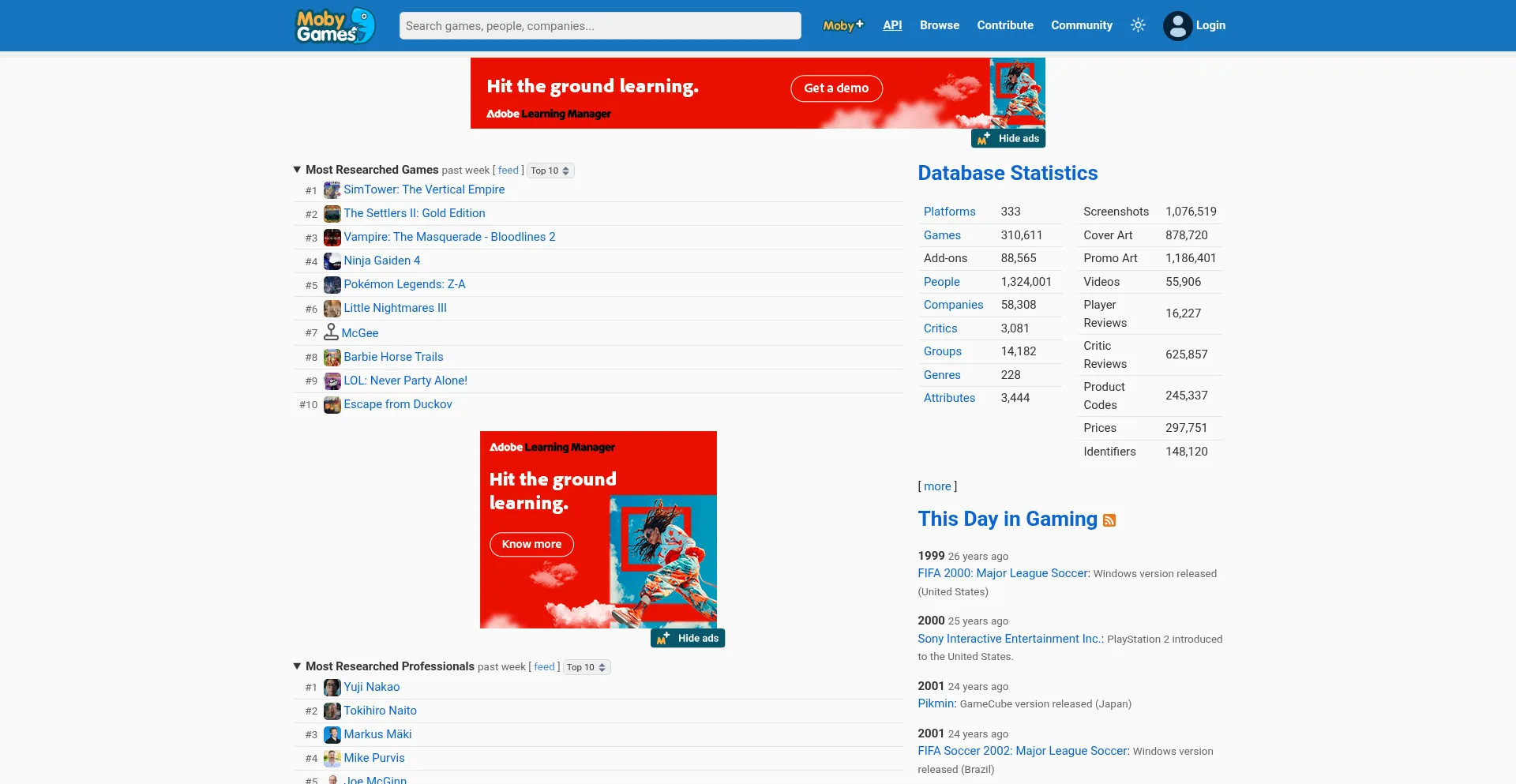 The oldest, largest and most comprehensive video game database covering 310,611 games and 1 million game industry professionals.