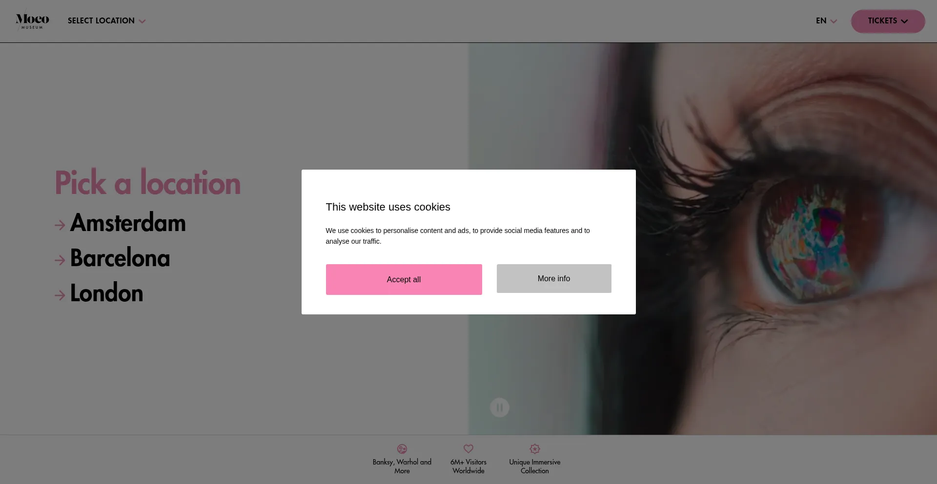 该网站实现符合GDPR或CCPA等隐私法规的cookie同意机制。这表明 mocomuseum.com 遵守数据保护标准并为用户提供对个人数据收集实践的控制。