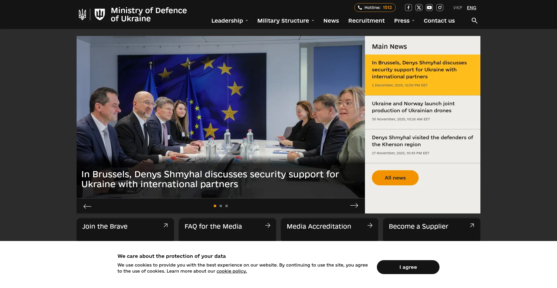 该网站实现符合GDPR或CCPA等隐私法规的cookie同意机制。这表明 mod.gov.ua 遵守数据保护标准并为用户提供对个人数据收集实践的控制。