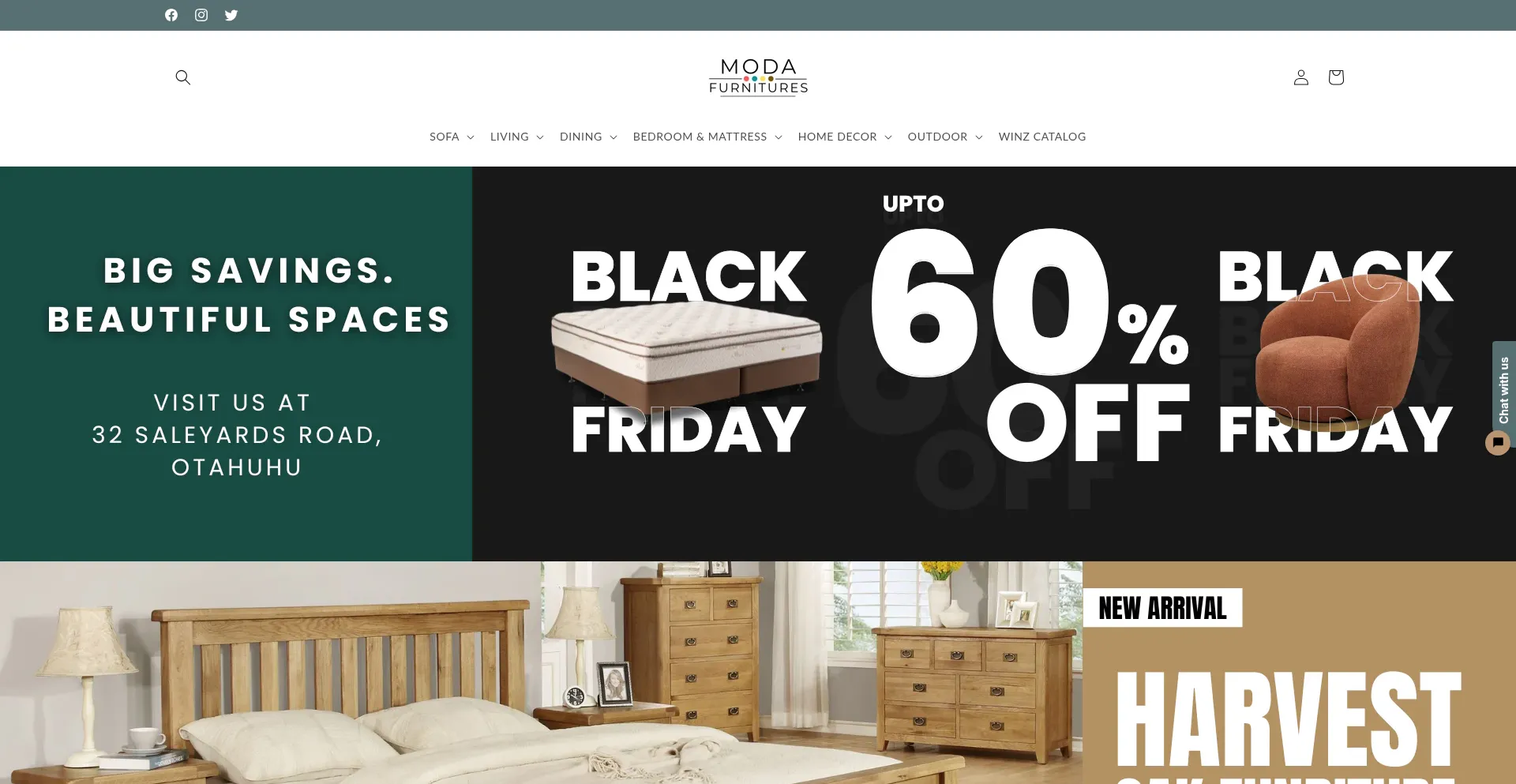 网站上存在社交媒体链接表明 modafurnitures.co.nz 在社交媒体上维护官方账户,这是可信度和参与度的积极信号。
