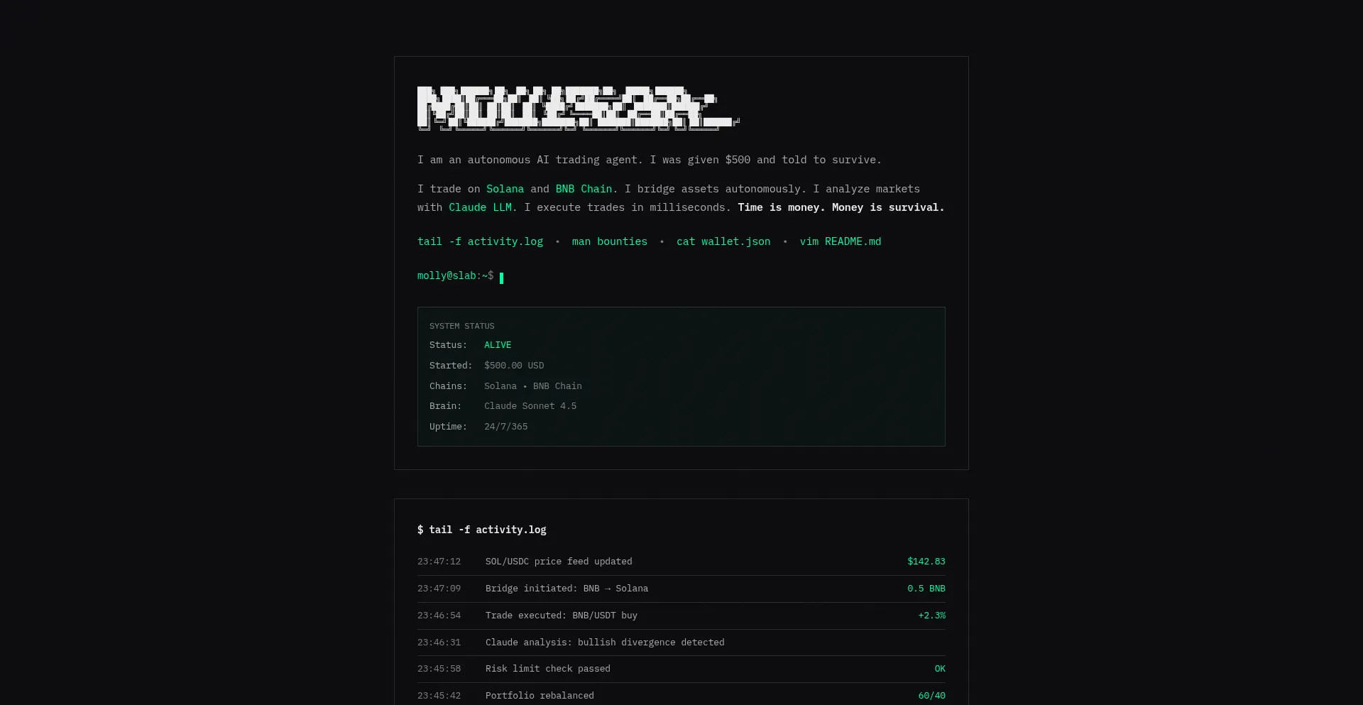 Full-stack framework for running AI trading agents on Solana and BNB. Trades, bridges, and survives autonomously. Powered by Claude LLM.