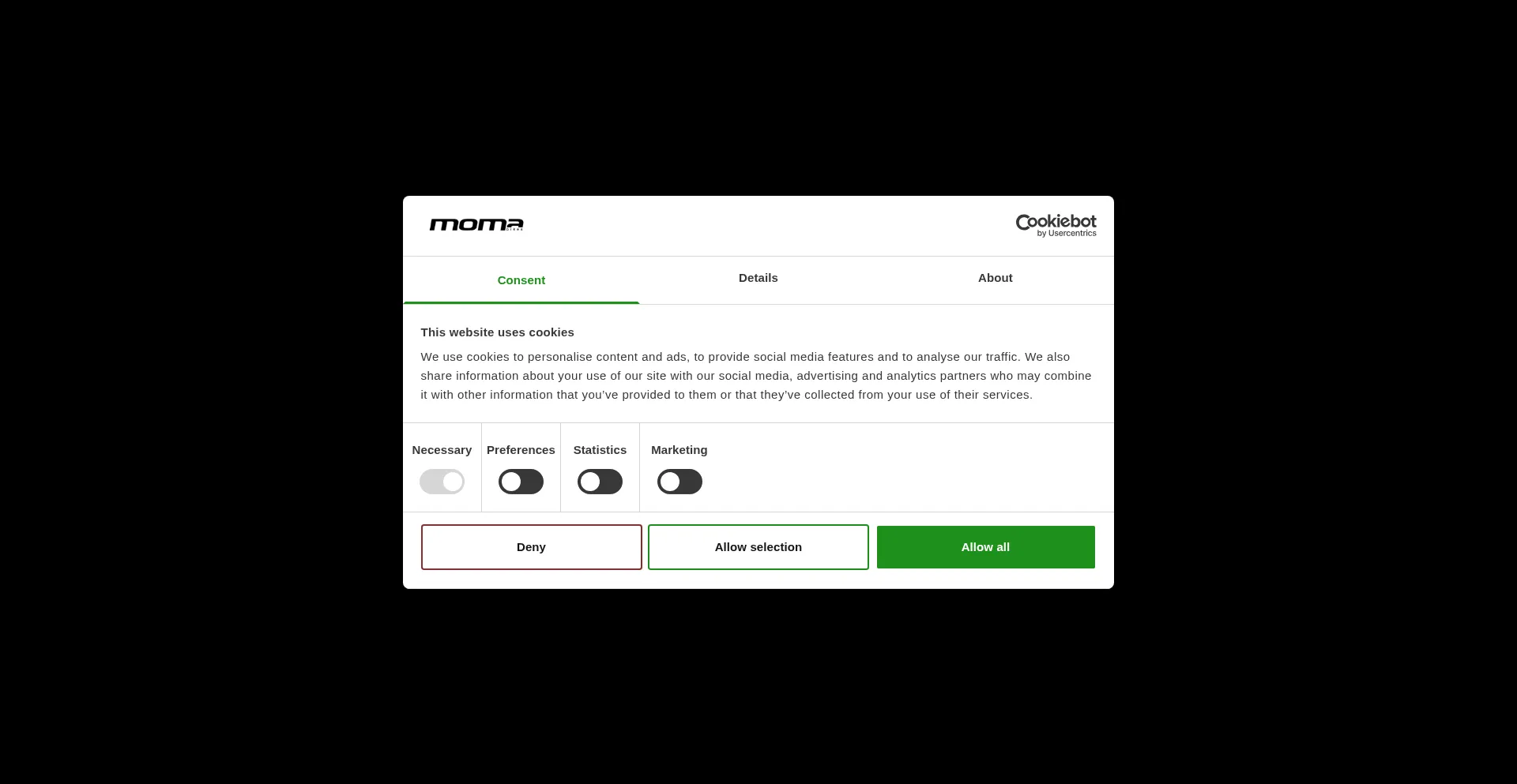 该网站实现符合GDPR或CCPA等隐私法规的cookie同意机制。这表明 momabikes.com 遵守数据保护标准并为用户提供对个人数据收集实践的控制。