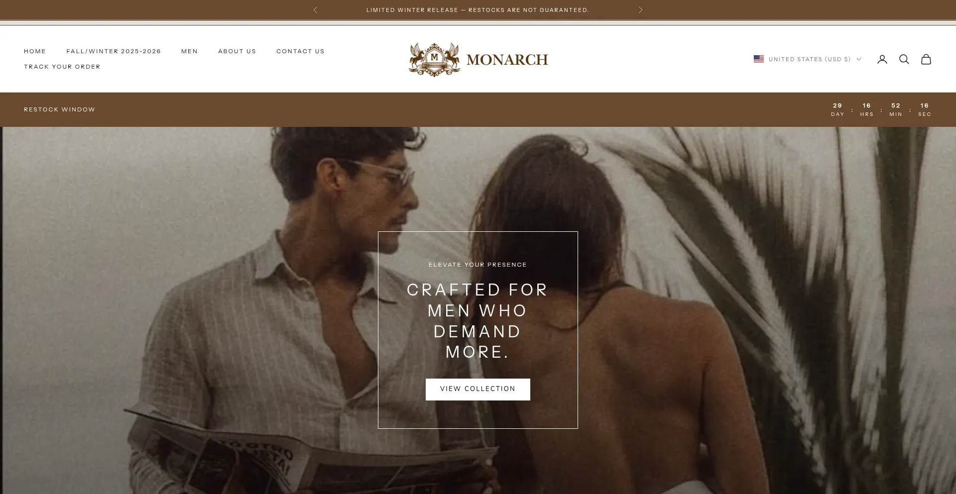 分析表明 monarchlvx.com 作为电子商务平台运营,促进商品或服务的在线交易。该网站实现了购物车功能、支付处理系统和产品目录功能,这些是商业零售运营的典型特征。