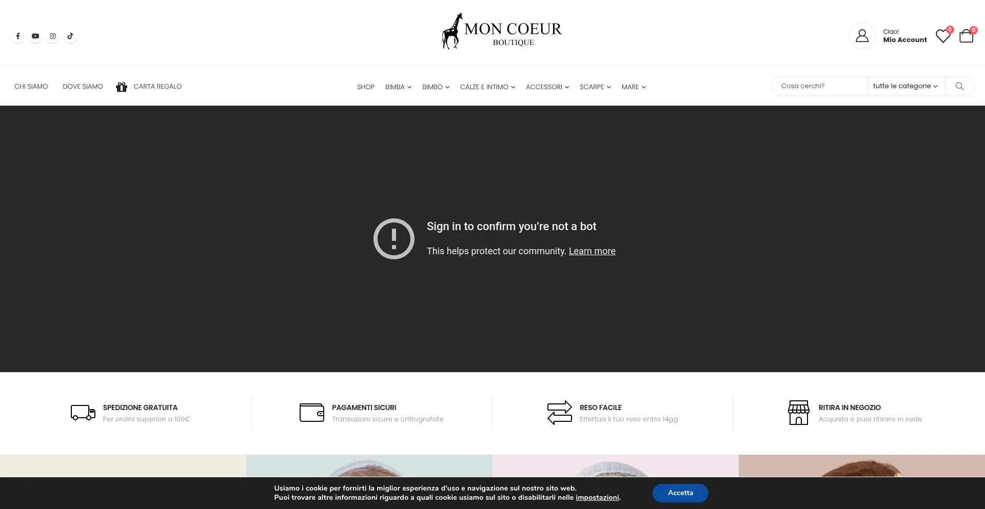 该网站实现符合GDPR或CCPA等隐私法规的cookie同意机制。这表明 moncoeurboutique.it 遵守数据保护标准并为用户提供对个人数据收集实践的控制。