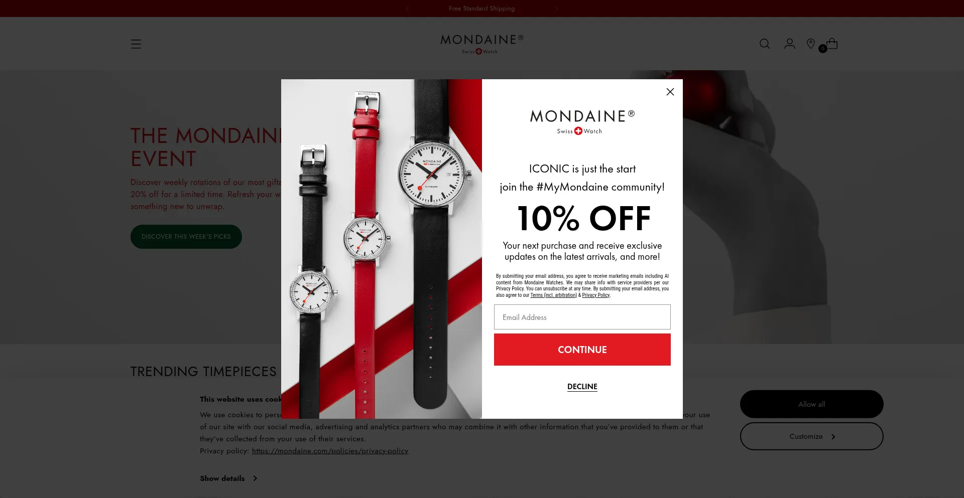 该网站实现符合GDPR或CCPA等隐私法规的cookie同意机制。这表明 mondaine-usa.com 遵守数据保护标准并为用户提供对个人数据收集实践的控制。