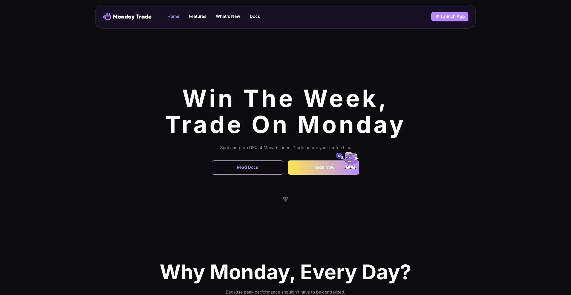 Spot and perp DEX at Monad speed. Trade before your coffee hits.